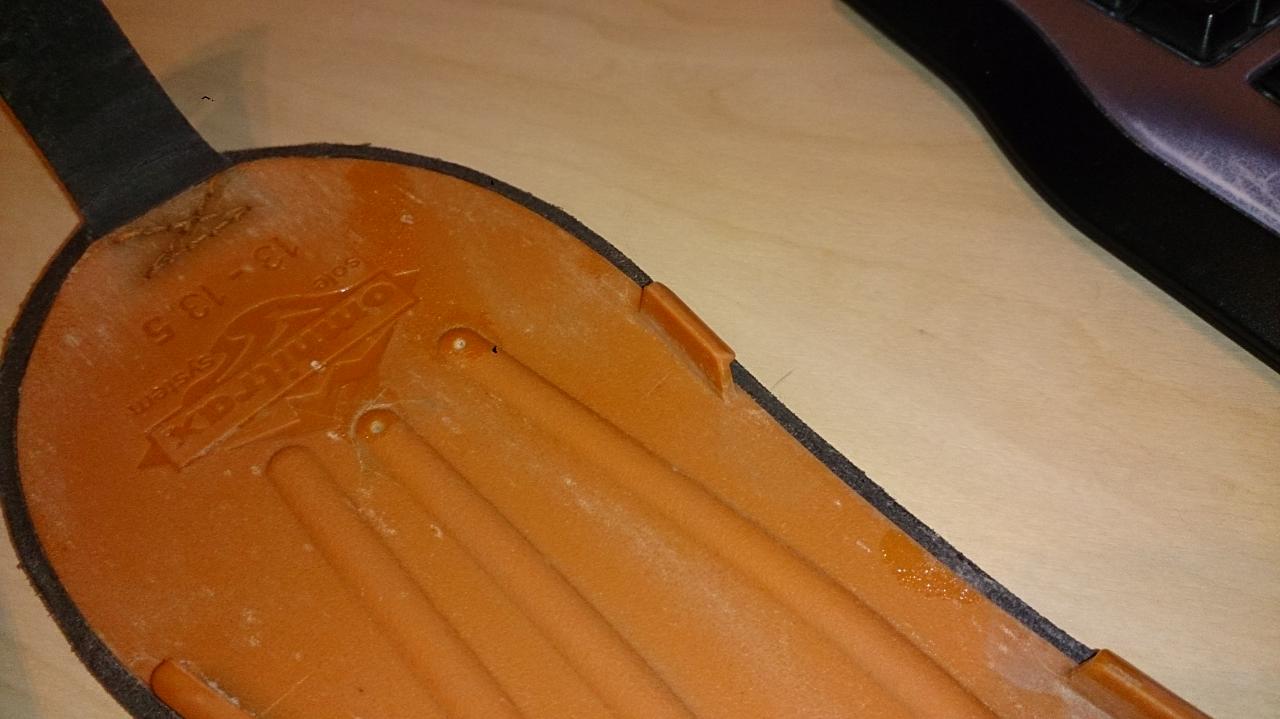 Ну еще, раз уж пошла такая пьянка, я немножко обнаглел и попросил у них вместо стандартных подошв (резина и войлок у меня в стандарте шли), положить в новые ботинки резину с шипами и svelte (если я правильно понял, это типа войлока, но что-то новое, берет в себя в 5 раз меньше воды, чем войлок, следовательно груз на ноге намного меньше). Ну и так как эти подошвы подороже доплату предложил, но номер не прошел, поменяли войлок на резину с шипами и на том спасибо.