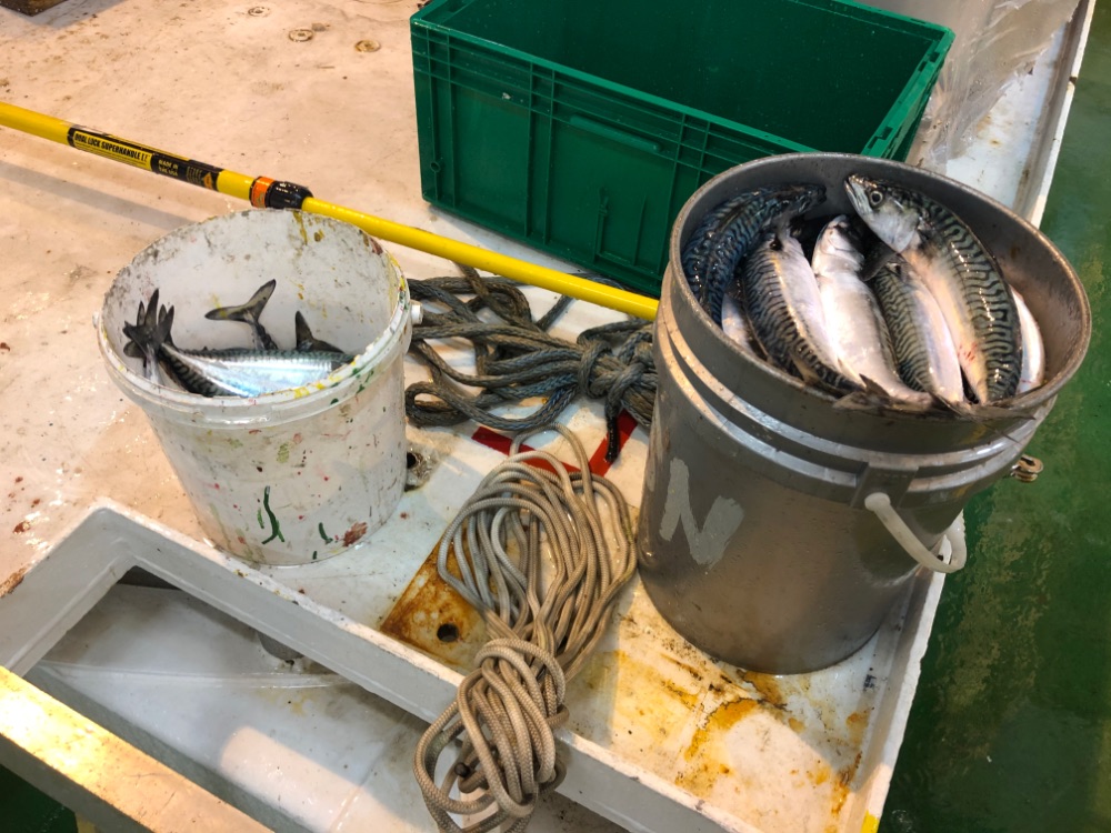 Стоим под Ставангером, район Гродхеим. Вечером покидал немного с борта. Снасть классическая - гирлянда с пилкером. Удалось взять несколько скумбрий и морского черта.