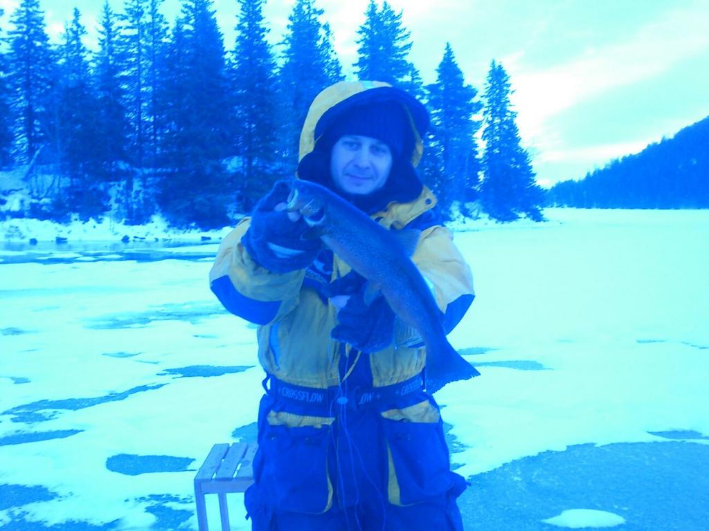 Вотт выбрался снова на лед....... снова голец, и изредка влетают форельки..... Погодка седня была не сказать что красивой то для рыбалки самое оно. А вот рыбко както капризничало. Но денек уже подлиннее значит и ловить можно подольше, а глядиш и под 80 штучег наковырял к вечеру. Вытащил одну форельку побольше т.к щас есть весы взвесил 640гр. И было интриго!!!!!! Вчипилось форелько под добрых два кило точно, несколько раз завадил в лунку но не завел. Вертлявая больно какаето попалась. разогнула крючог...Ну и пусть гуляет. Порадовала и спасибо. Сегодня хороший день, не скучный.