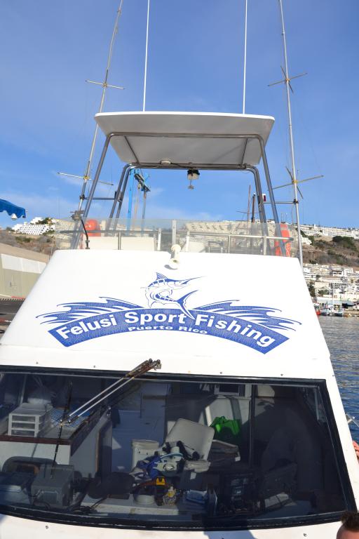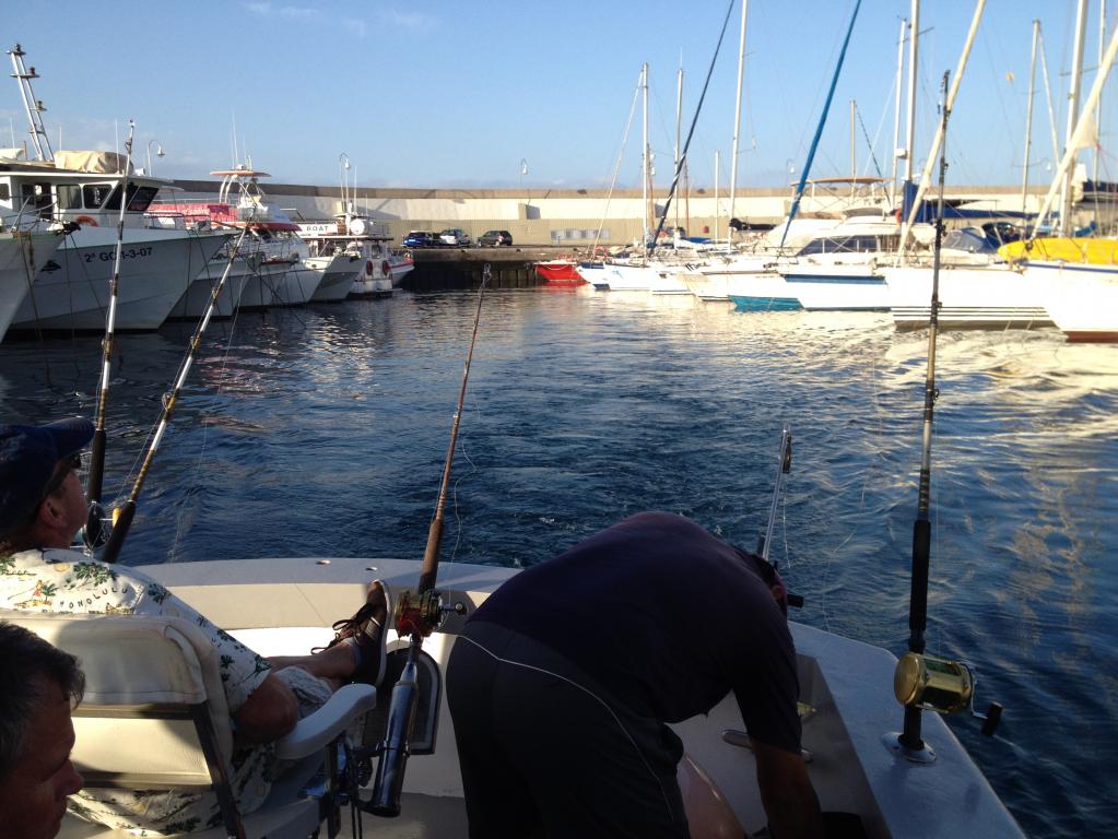 Будучи уже немного сориентированным в округе городка Пуэрто Рико на Гран Канарии, отправив своих на пляж, решил выяснить возможности развлечь себя рыбалкой. Быстро пройдясь по порту на первом причале наткнулся на лодку предлагающую такие услуги, рядом будочка с дядечкой, который набирает команду желающих и вручит вам буклет с красивыми фото удачливых рыбаков. В общем все просто и заманчиво, и по цене 60 евро с носа, не важно один ты или компанией, выходят каждый день в 9 утра, обратно в 15:00, воскресенье выходной. Я не ждал особо ни каких больших трофеев и не питал сильных иллюзий, но подогреваемый рассказом одного знакомого о поимки марлина, вот так на дурака и находясь уже на месте быстро записался в команду того дня. Команда в тот день состояла из двух англичан, финской семьи мама плюс два детеныша, шведа и меня , т.е общим числом 7 рыбаков. Ровно в 9:00 мы быстро погрузились на лодку, отшвартовались и пошли. По выходу на открытую воду команда из двух егерей расставила снасти и закинула всевозможные приманки для троллинга.