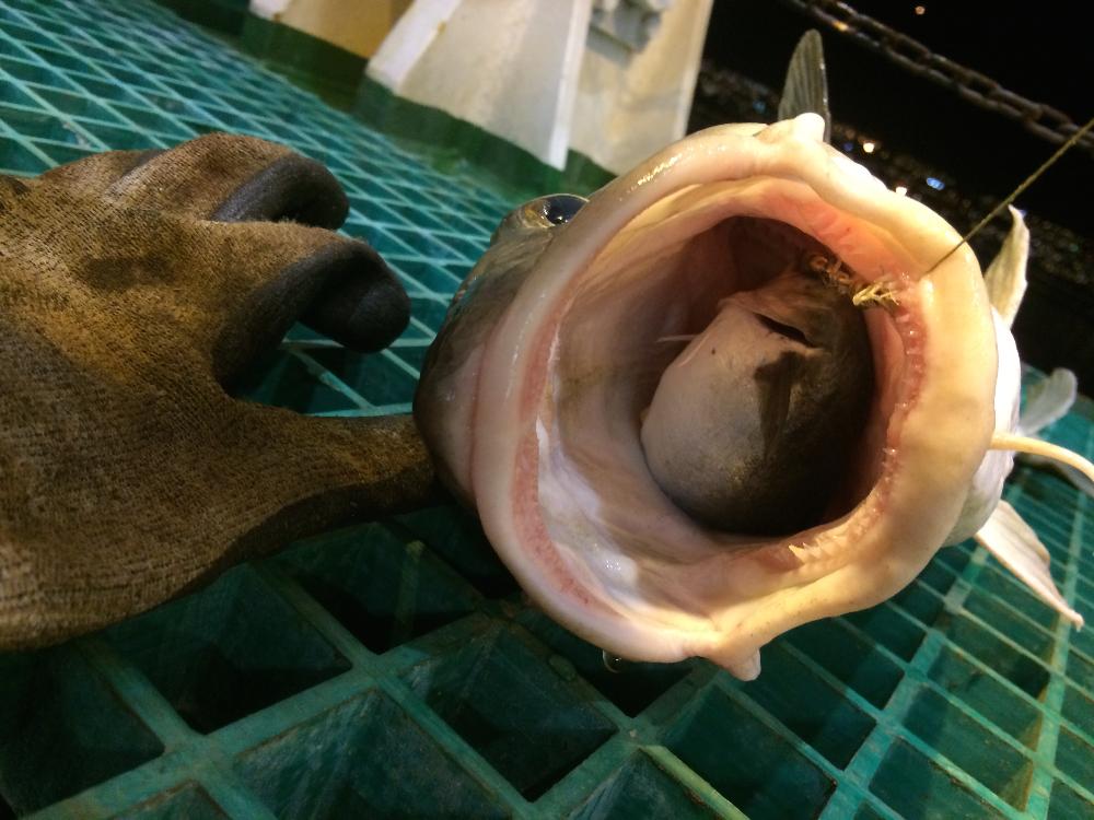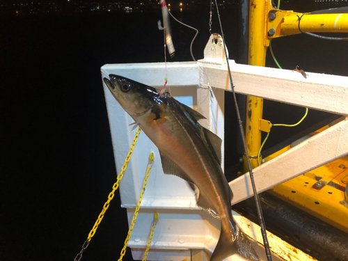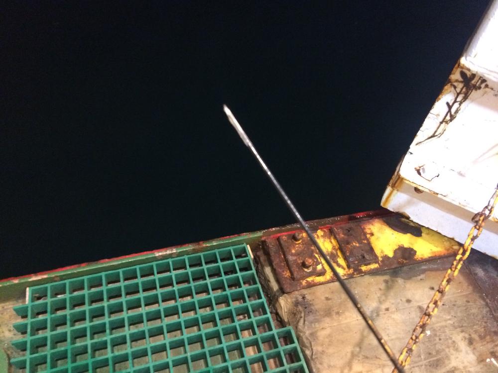 В одну из ночей вышел на палубу и закинул знакомые снасти - гирлянда из 3-х крючков и классический пилкер на 300 грамм.