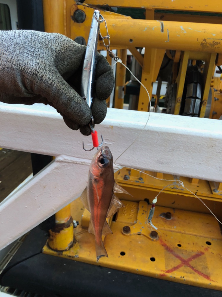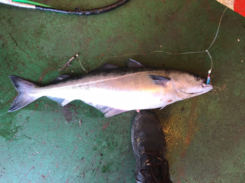 Несколько дней подряд делали пробы плотности грунта, останавливаясь на каждой станции минут по 10-15. Это были идеальные условия для рыбалки, так-как судно стояло в ДиПи и достать до дна 300-от граммовым пилкером на глубине 110 - 140 метров труда не составляло. На одной из станций села Сайра, довольно крупная. Ну, тут-то азарт и пошёл!