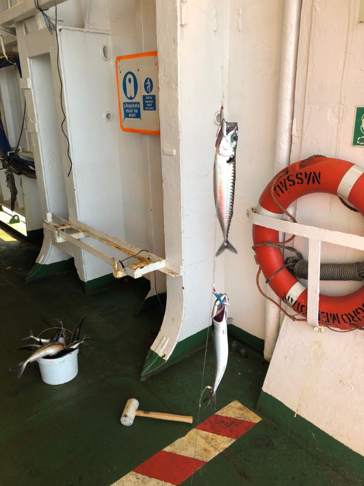 Рыбу как обычно отдал на камбуз, а пару штук филировал, засолил и повесил сушится - будет закуска к пиву!