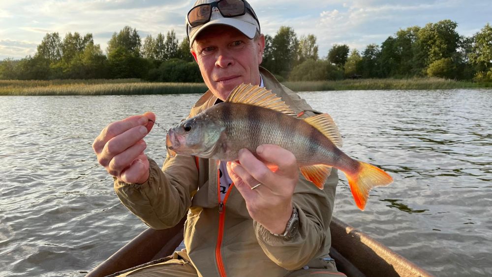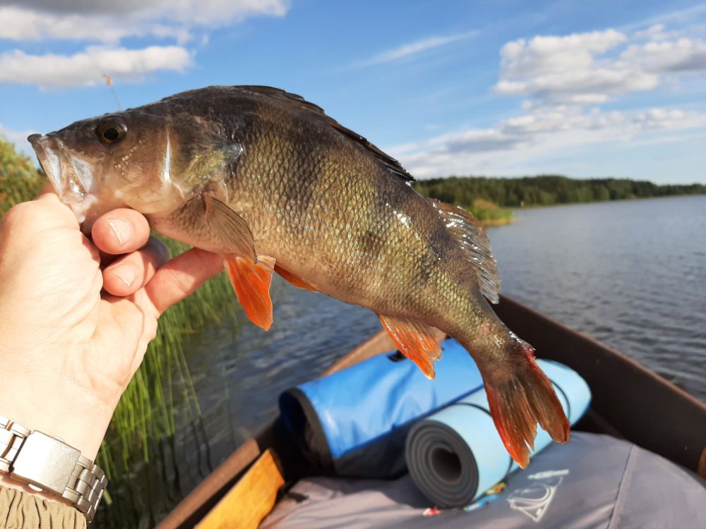 Чуть сместившись, метров на 50, нащупываю стайку окушка, полавливаю, но почти всех за борт, взял 3 шт. сьедобных, грамм по 200-250.
