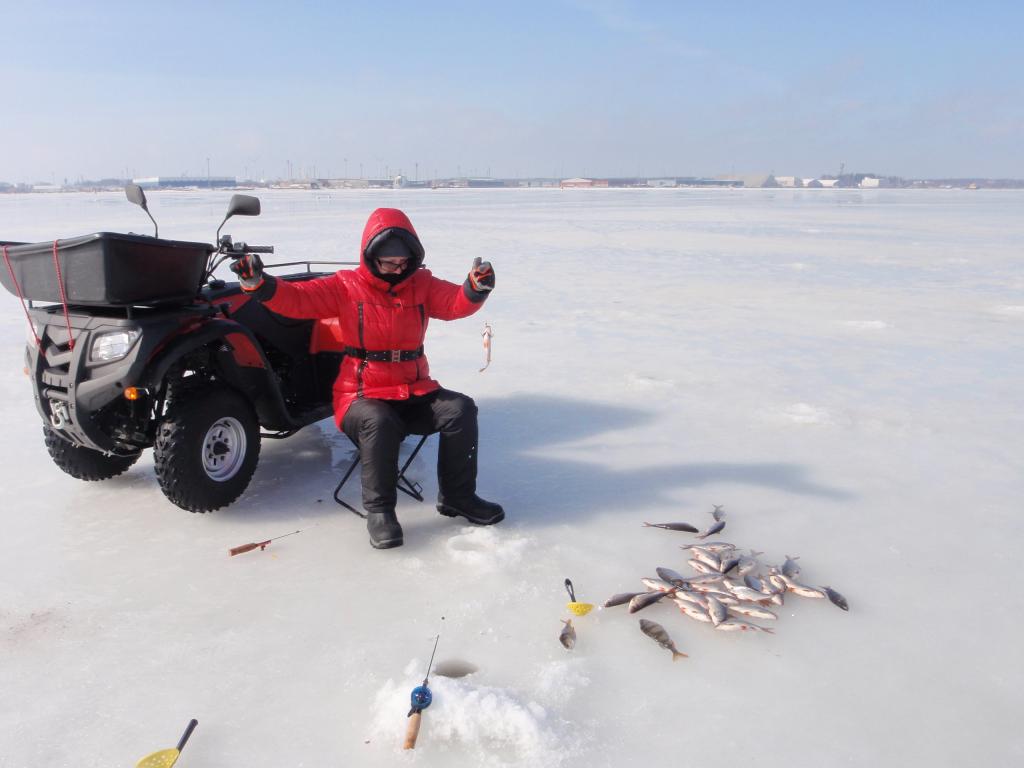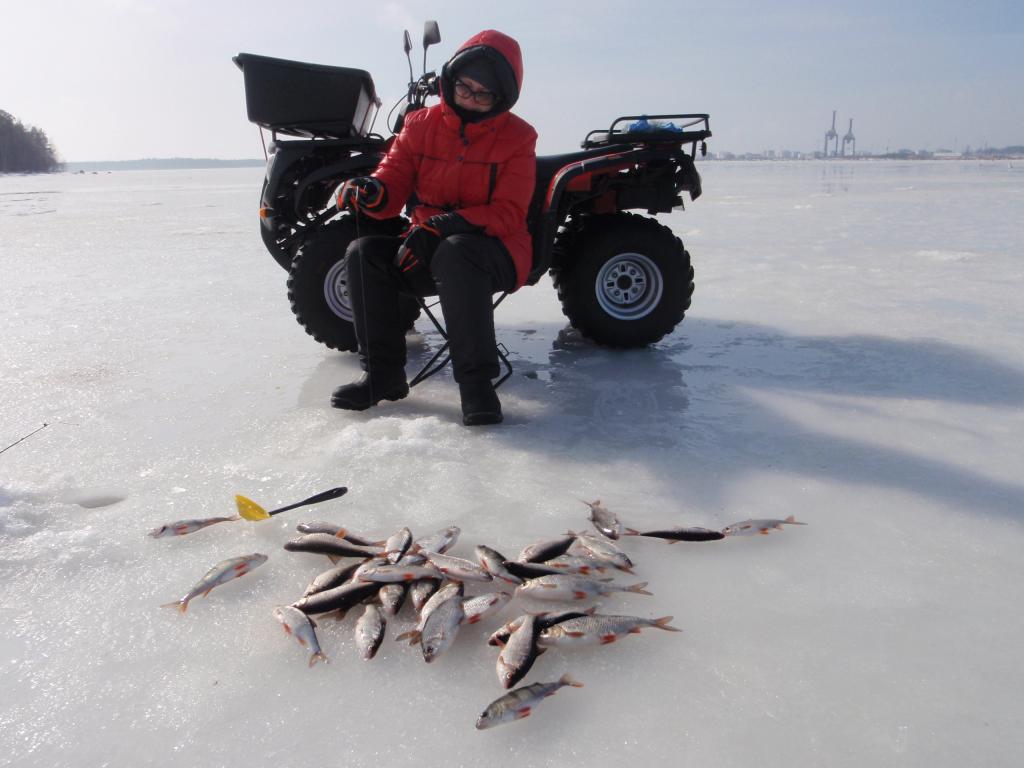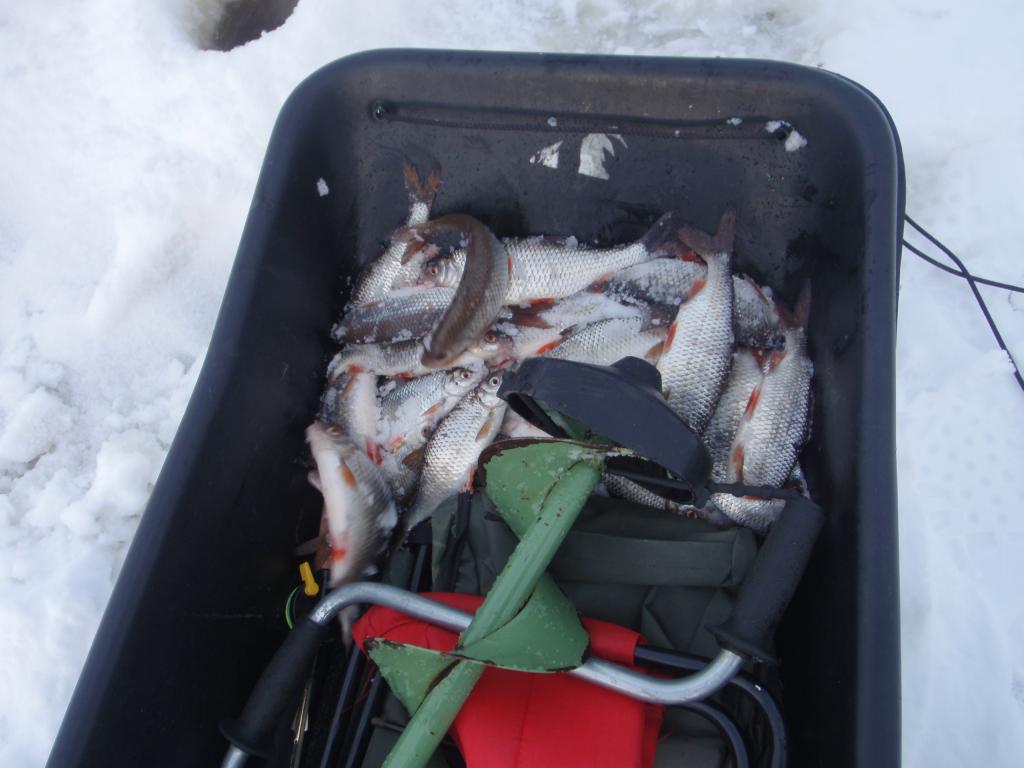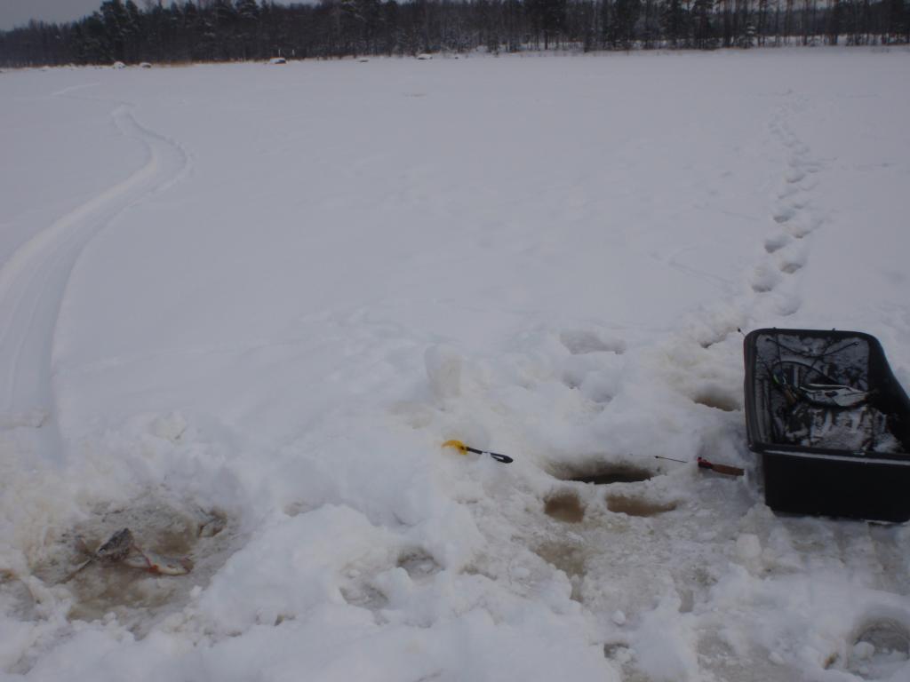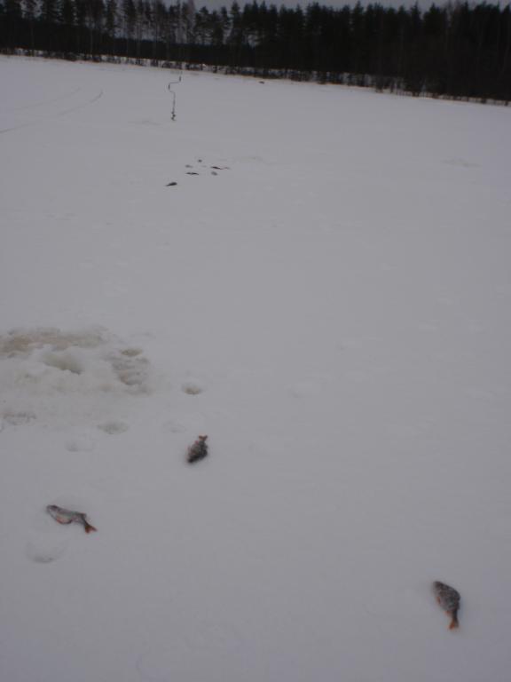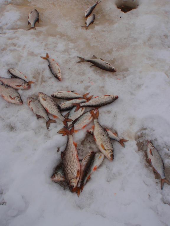 Не проклюнулись мои прикормленные лунки,ни вчера ни сегодня. Метрах в 200 отработали две лунки по пару минут,успел выдернуть около 20 голов и усё. Рыба клюёт не плохо,но кто то её гоняет,а может сама носится в стаи сбивается. Ещё льда сантимов 20-25 есть,значит повоюем!guntars74 писал(а): Прикормил,завтра проверю