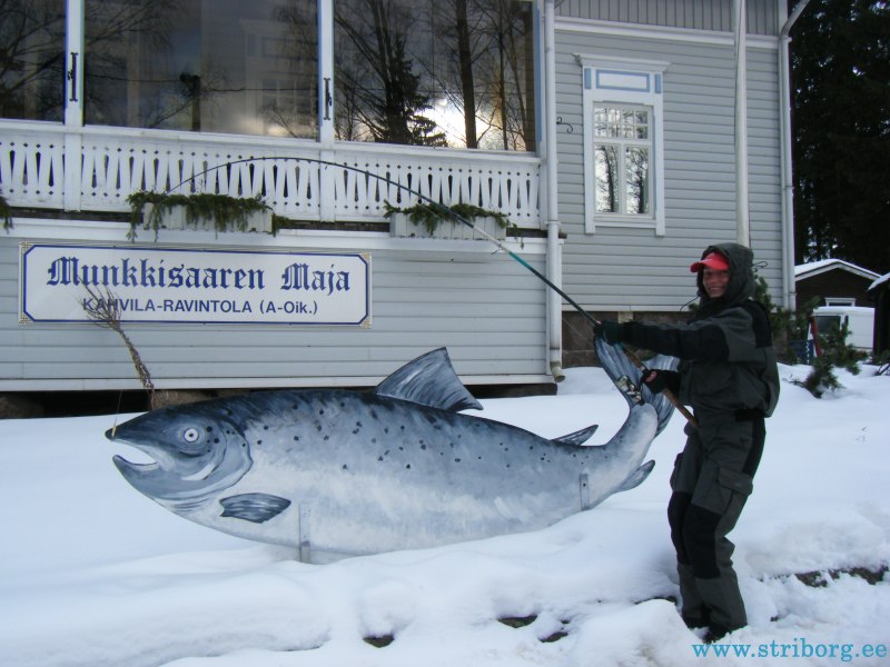 За спиной - ряды воблерков, ценник в 20 евро ещё не самый высокий.. есть и и дороже чухонские буратины лососёвые.