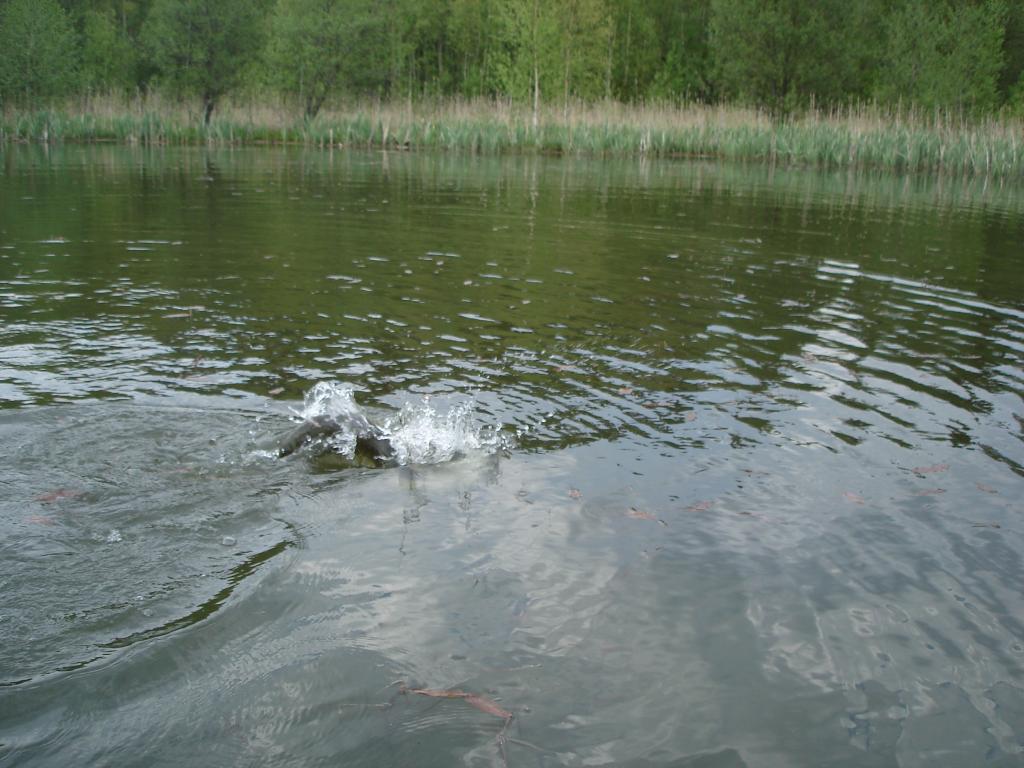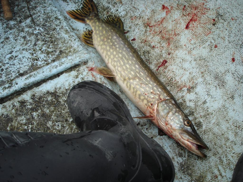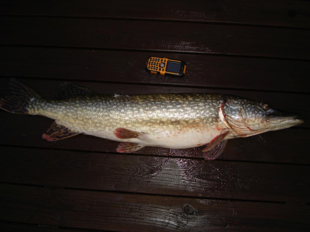 Менял приблуды, ни удара ни загиба... Решил сместиться и пробросать заливчик с травой, она ещё не опусилась местами. Ставлю мелкоидущий кренк, как-то прикупил у ФИЛа несколько разных, на Саунья работали неплохо. Поклёвка на одной из проводок.... Не зачепилась.. Вроде мелковат размерчик, оценил визуально при атаке. Прошмалял ещё веером вокруг.. тихо. Меняю точку - островки камышиков, травы у поверхности не видно. Ставлю минношку от Ю-Зури, гламурно розового с перламутром белым... Заброс в чистое пятно воды пять на пять, между пучками камышей... Тынц при первых оборотах катушки! Взяла почти на выбросе, сразу не оценил размерчиг, но вскоре понял что не кило и не два. На лайт который гнулся прутиком стал выкачивать аккуратно, уводя от камышей и травы, что были неподалёку. Пару проходов под лодку дали мне шанс проупражняться в наклонах и балансировании в лодке. Нормальная толстенькая щука показалась наконец-то у лодки, не сделав ни одной свечки - всё время шастала по глубине. Подустав, просто дала себя поднять к поверхности и легла на бок рядом с бортом. Перекинув рукой в лодку, сразу ощутил приятную тяжесть. Пятёра минимум, мыслЯ в голове. Зачёт!!! Можно и сезон на этом закрыть.. Или нет??? Не-а.. нужно лодку вытащить, перевернуть на зиму на бережку и ждать льда. Так и порешил. Выбрался на берег, лодку поднапрягшись выпер на берег и перевернул, пристегнув к дереву на замочег.. А фотку!!!???!!! А фотик умер, аккумы умерли ещё в Таммисаари, еле щёлкул тогда несколько кадров... Кидаю рыбу на доски причала.. моргает фотик и тухнет... Пробую несколько раз, один кадр или два вроде удалось сделать. Ухожу домой в сумерках, идти прилично - метров 200-250.