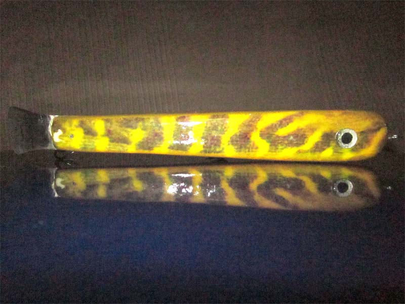 Последний - нечаянный эксперимент. Отверстия под огрузку начал сверлить не с той стороны, ну и решил так оставить. Соответственно и раскраску решил сделать в стиле "дохлый рып" ))