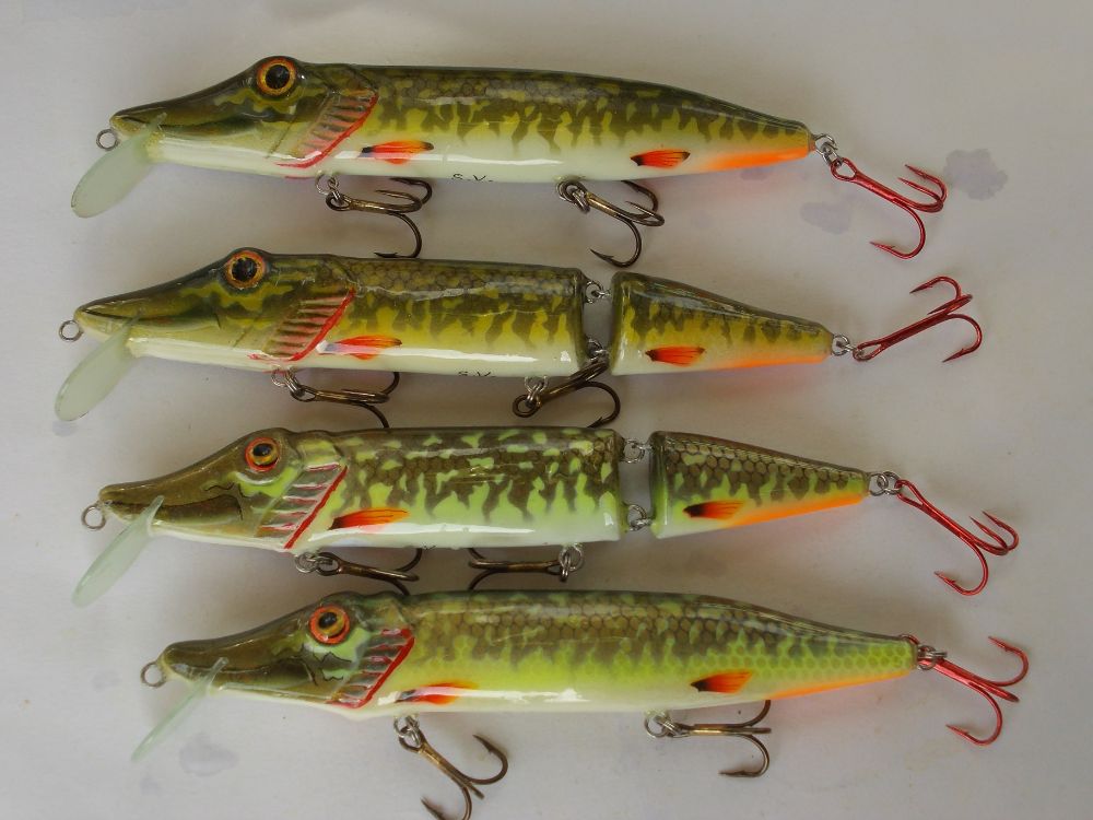Сделал ещё четыре штучки щук.Очень они в прошлом сезоне хорошо отработали. Составники 35гр. цельные 33гр. ПВХ ,плавающие, 150мм. Лопасть делал из стеклотестолита 1,2мм.