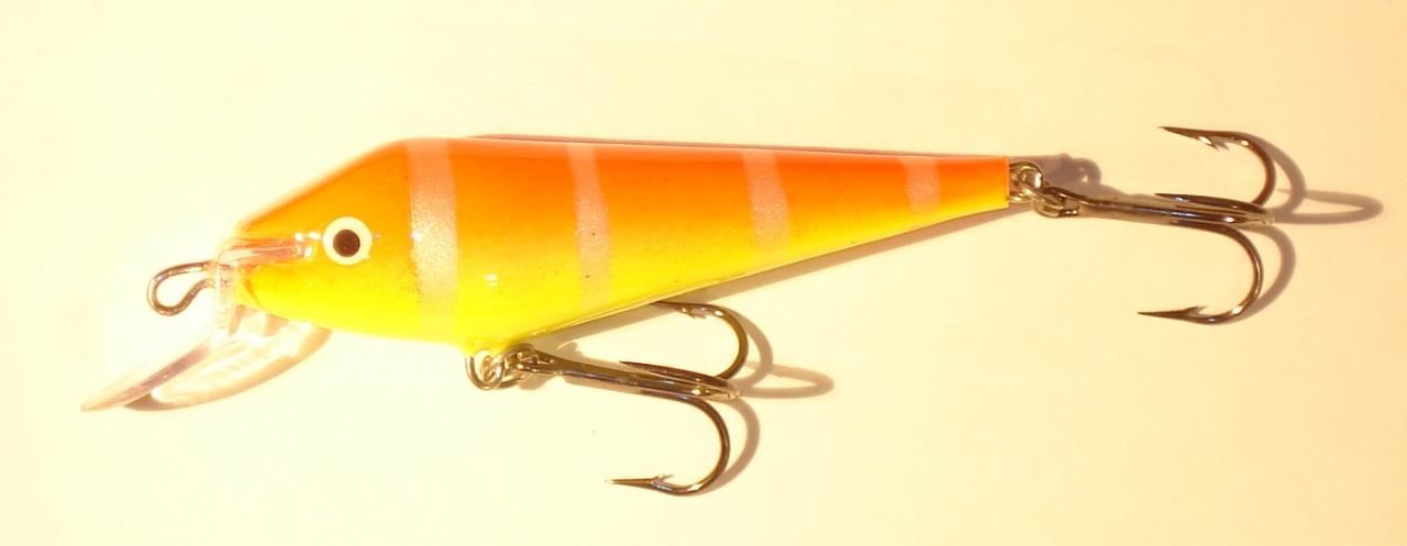 Очень понравилась форма воблера, которую тут предложил alex 78 и даже где-то выложил шаблоны. Понравилась игра у таких буратин, красиво плавают, виляют хвостиком, при этом голова на месте. Вроде так учили. Сделал по его мотивам сразу несколько штук. Вот один из них.