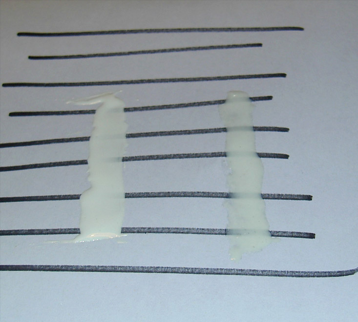Выкраска справа концентрация титановых белил около 4%, слева нормальная концентрация для гарантированного эффекта укрывистости более 10%. Разница заметна. При концентрации белил 10% и выше густота эпоксидки меняется кардинально.ara писал(а): почему это? диоксид титана (титановые белила Аркадий недавно писал) прекрасно подходит для закраски эпоксидки, при чем достаточно 2% от обьема смолы! стоит копейки.