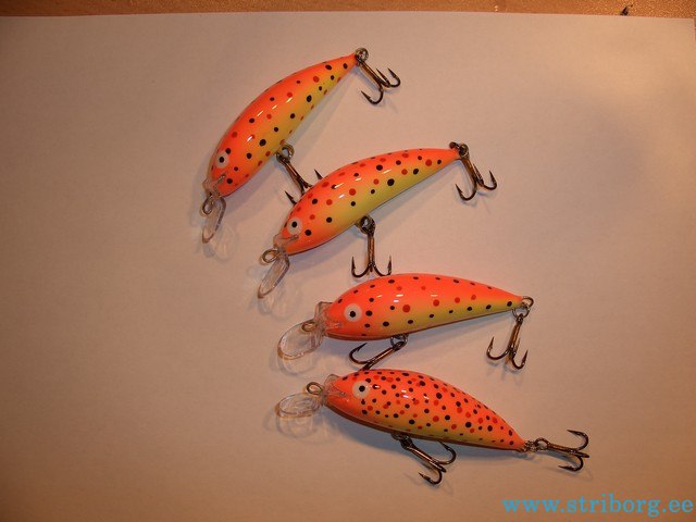 Да , конечно, формы воспроизводимые. Вот сижу ночами и воспроизвожу "на глазок". С мелкими модельками конечно проще, с 13см. моделью посложнее, длинная очень, но вроде получилась. Одну правда запорол при покраске. По поводу заглубления, я думаю, что нетвичинговый воблер пойдет на 3 метра, ну я так думаю. Сейчас конечно нет возможности дать какую-нибудь точную цифру.