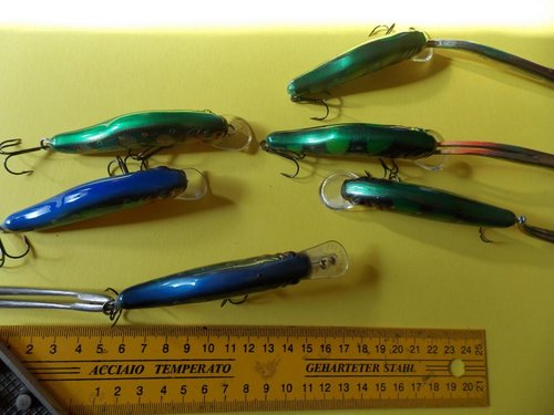 Пробовал разную огрузку. Игрался с огрузкой от самого носа, до самой кормы. С высотой огрузки. Пробовал разные лопатки. И форма и длина. Треугольные, круглые, прямоугольные. Но вот два воба уже на финальной стадии, уже с фольгой и глазами улетели в ведро. Игра какая-то невнятная - если груз находится в животе. Или воб уходит в сторону с выходом на поверхность - если груз поднять выше к спине.