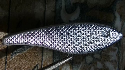 Я когда говорил о нанесении насечки, то имел в виду на уже обтянутый воблер. что касается, что рельеф не растягивается...как такое может быть? Если конечно на плоский бок воблера наклеивать, то да. Но и тут переходишь на спинку - сразу складки. Надо вытягивать их. А с ними и рельеф. Не знаю, но у меня так. А уж если воблер не плоский, а круглый в сечении, то ещё хуже. Повторю - имею в виду полную обтяжку. Сейчас доделываю второй маленький воблер - обтяну его прокатанной заранее фольгой. А на первый сделал насечку лезвием. Закончу - сфотаю оба для сравнения.