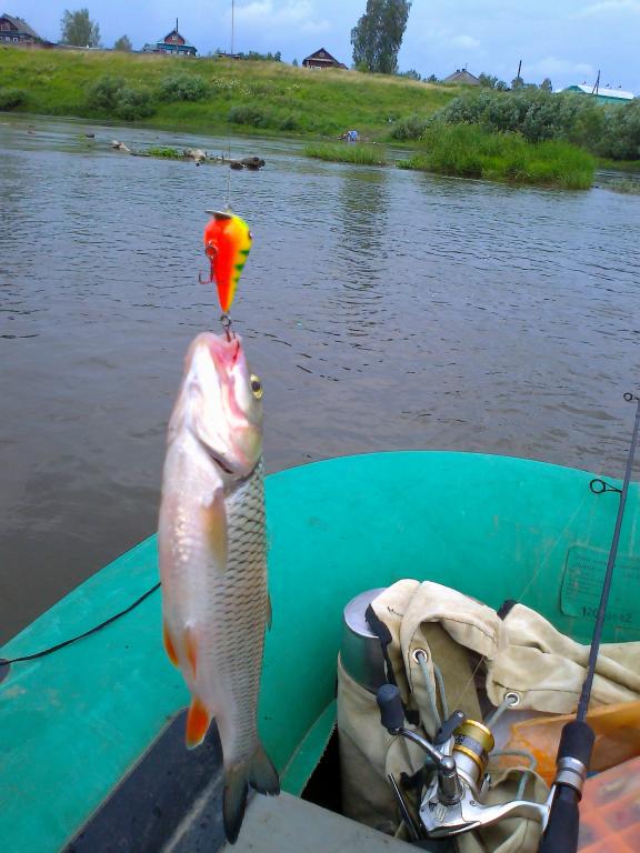 Несмотря на двухнедельное отсутствие дождей, реки у нас ещё очень мутны, уровень воды выше обычного, весь голавль стоит под самым берегом,- клюёт только если воблер падает ему под самый нос .