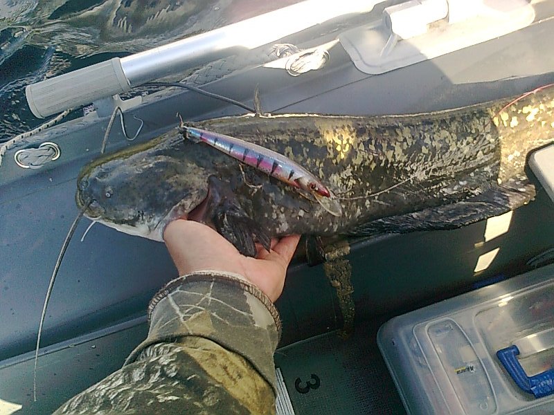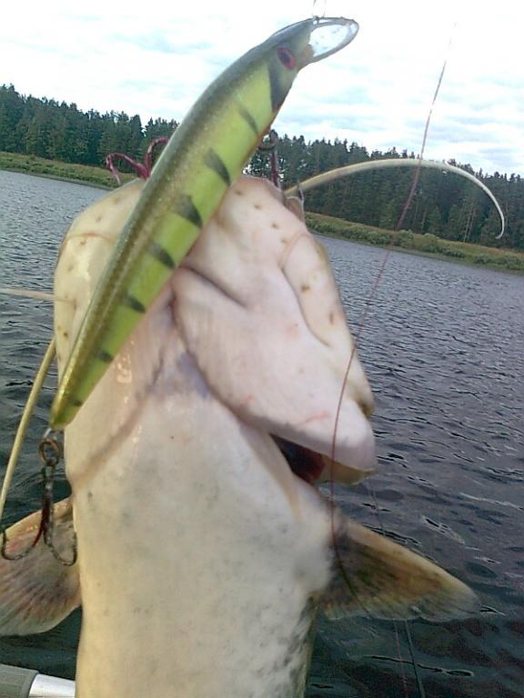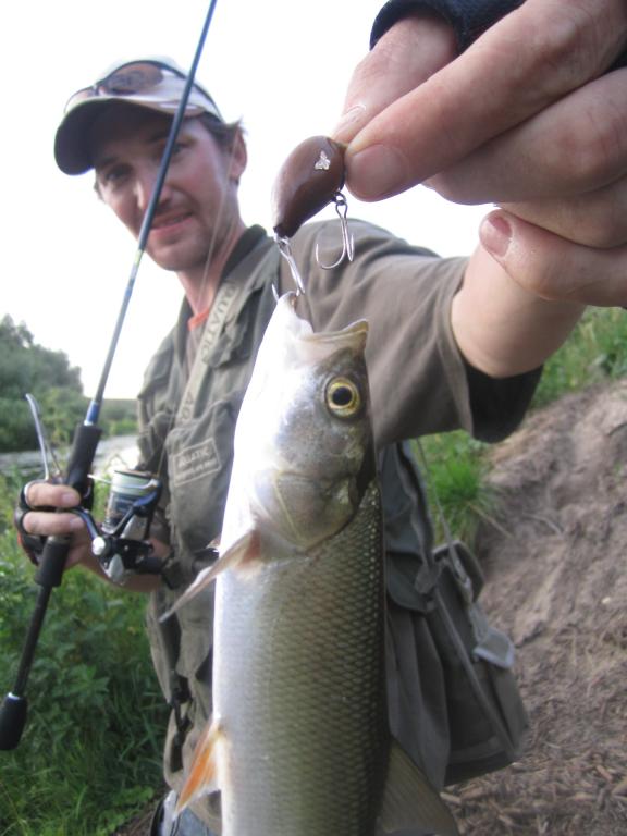 Как и обычно приманок с собой было взято много, но сколько не подбирал их все поклёвки почему-то получилась на один страшный, ч1рный в серебристую крапинку воблерок.