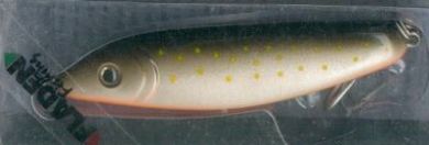 Очень хорошая аэродинамика и оч дальний заброс, требует достаточно быстрой проводки и отлично работает по кумже. Вообще-то быстро тонущая, при объеме около 14 кубиков стандартный вес 30 или 40гр. Однако при соответствующей скорости проводки идет под самой поверхностью. С настройкой сложно. Приемлемой повторяемости добиться пока не удалось.