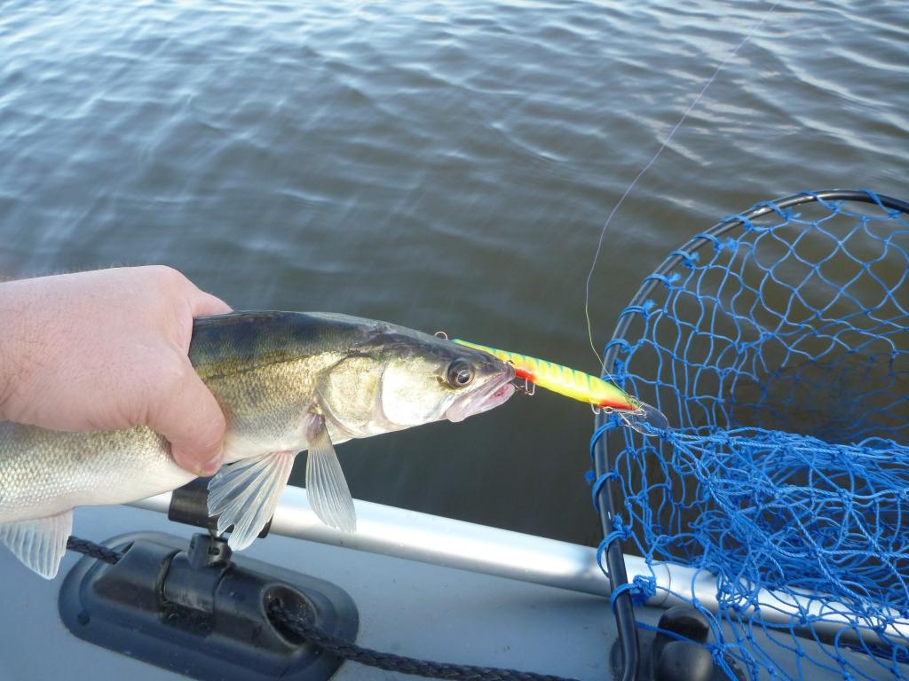 Судак-то был всего-то на полтора кило. И вываживания, как такового, не было (просто вытянул). И сачок не понадобился. Смирный такой... пока в лодку не попал.