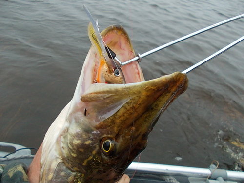 у напарника воблеры без плавничков у него ни одной , у меня шесть поклёвок- пять вытащил одна по дороге соскочила... щучки от 1,7кг. до 4кг.