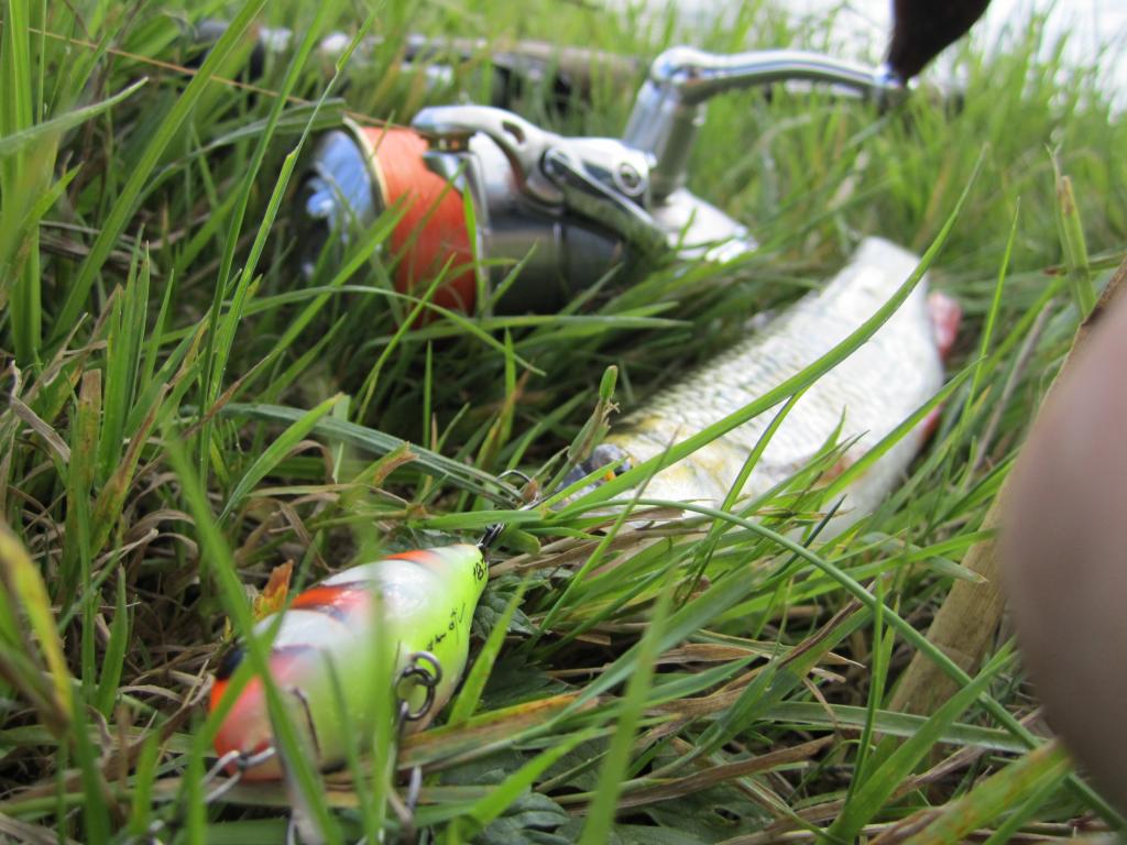 Покидал свой воблерок с маленькой надеждой на "авось клюнет" и таки поймал двух за 10 минут , второй правда отцепился по дороге к берегу, вода уже холодная, потом воблер зацепил за что-то крепкое (трава) и ужеотцепить не смог, даже отцепом, оторвал , но .....
