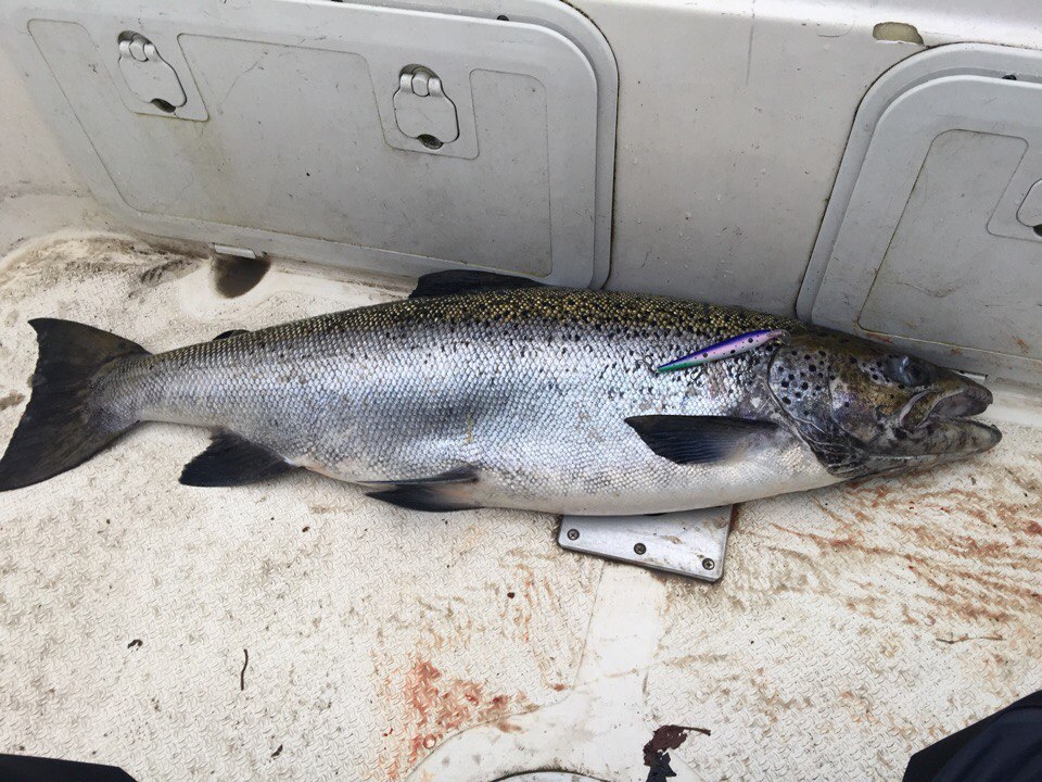 Новый воблер, теперь 70мм и уже фиолетовая спина, и новый карпатский лосось за 60см. Отпущен, Красная книга.