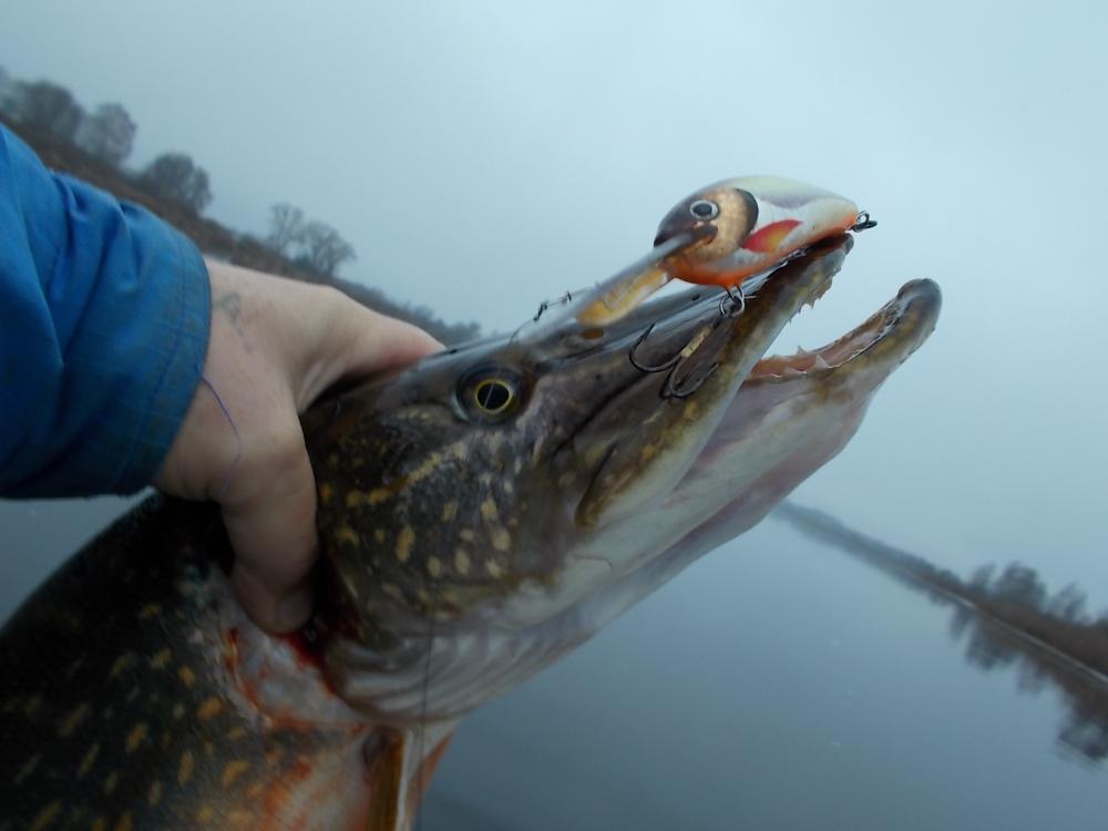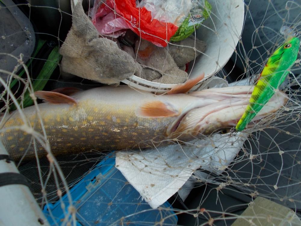 Утром было более менее тихо.Раздулся к обеду.Погода ломалась и щука знала все, гораздо лучше нас.Проплывая под лодкой, еле шевеля плавниками- просто игнорируя все предложенные приманки... Было всего два выхода,одного "шнурка" уговорил "не по честному "- (бодбагрилась снаружи)... Сделал фото и утопил (позвать родителей). Но на этом -всё! Ну и ладно!