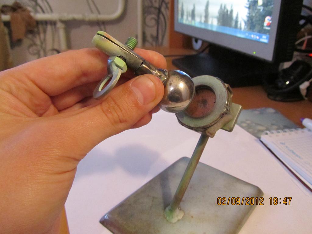 всем привет!!!после долгих мучений с покраской пришлось придумать держатель :oops: (сделан он как обычно из того что под руку попалось:-основные детали это: магнит,шарик от подшипника и шайбы нужного диаметра под шарик)всё остальное как получится(получается шарико -магнитная система какая то :D) .Теперь можно зажав приманку один раз выкрасить её абсолютно в любых ракурсах
