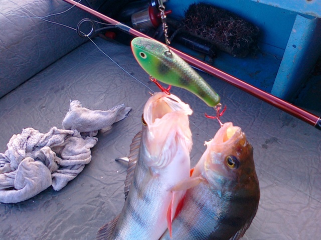 окуни речные , там вода мутная , наверно по этому они такие блеклые , без полос ...зимой ловили окуня как будто золотого , или морковного цвета , наверное эти цвета связанные с каким то нарушением обмена веществ... от друзей три фотки пришли, один воблер ,на последней фотке , даже имя свое имеет - Коренной .vitalyevich писал(а):jurasemia