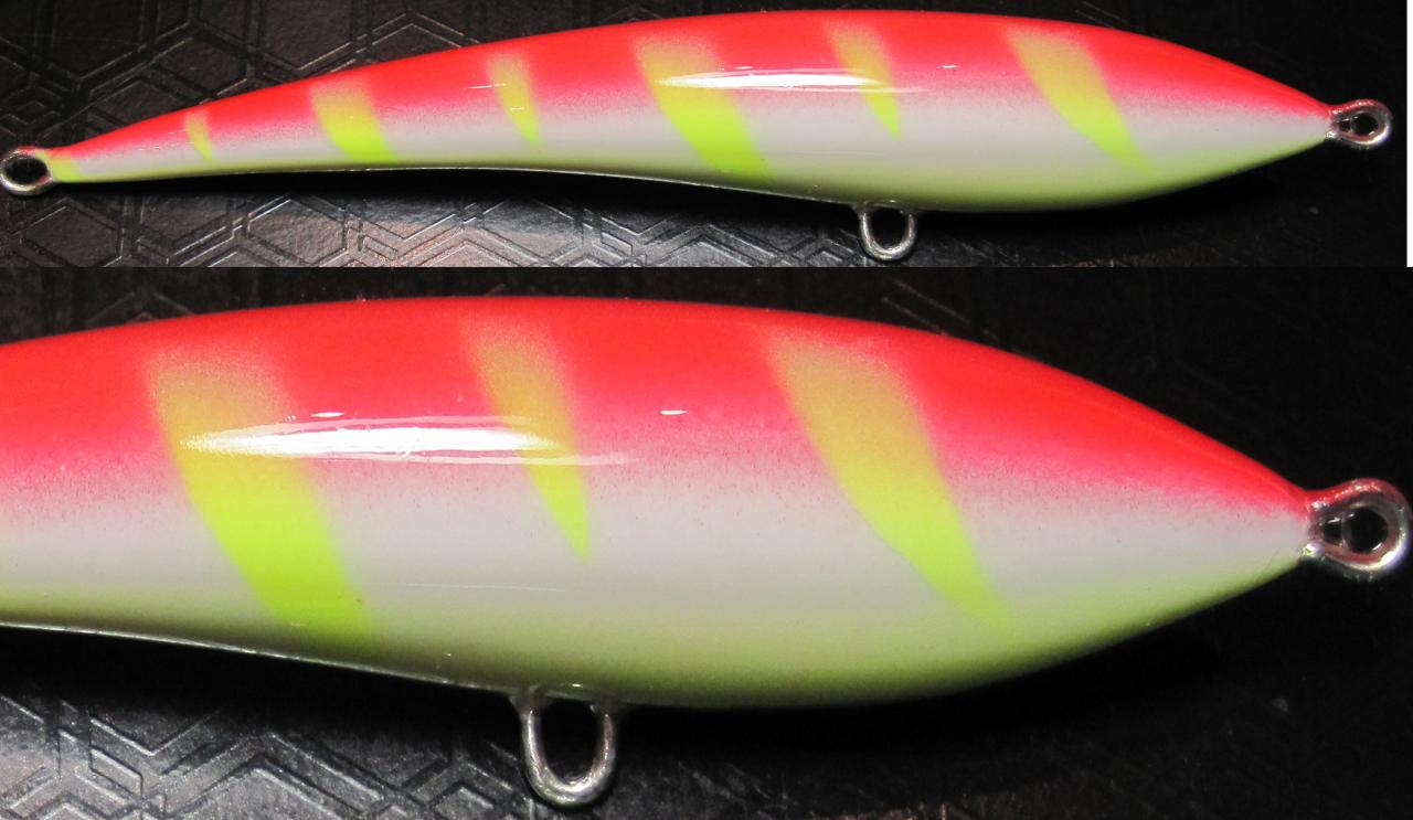 Светлые тона крашу через белый цвет, трафарет из обычного картона для детского творчества. Только не прижимаю к поверхности воблера - не нравятся резкие переходы. Не спеши - дунь тихонько, дай подсохнуть полминуты, ещё разок, ещё подсохнуть и т.д. Яркие цвета сразу можно красить, без белой подложки, но тоже желательно в несколько слоёв. Аэр-ф: близко не приближать, тонкий факел делать не нужно.
