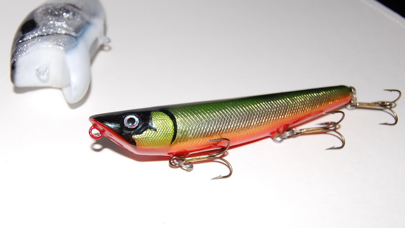 Кракелюрная парочка и твичинговая моделька, выполненная под ima popkey. Удивительная анимация получилась у поверхностного...в разделе "Видео " выложил игру приманок. По поводу Ima все таки добавлю комментарий: В воде вертикальное расположение, при коротком и резком рывке уходит вниз, при коротком слабом рывке - чуть вниз, в бок и в сторону. При плавном ускорении идет как поппер. Все заглубления сопровождаются "чмокающими хрюпами" (извиняюсь за дебильное определение). При серии рывков воблер заглубляется, делает петлю и выскакивает. На видео этого к сожалению заснять не получилось, так как ванна маленькая и при другом ракурсе вообще бы ничего не было видно(((