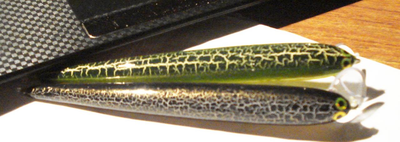 Так это один и тот же воблер, только сфоткан при разном освещении. Что бы было видно, что он светится. Утверждать со 100% уверенностью не берусь, но 98% что это так. Обычно, когда снимают воблер с эффектом люминофора то делают два снимка - при дневном свете и в темноте. Люминофор мне недавно пришел - на днях опробую и выложу результаты опытов. Но он при нанесении прозрачный. Кстати возможно что ты и прав и это тоже кракелюрная техника.domowoi писал(а):Знаешь но на 2 фотографии их два