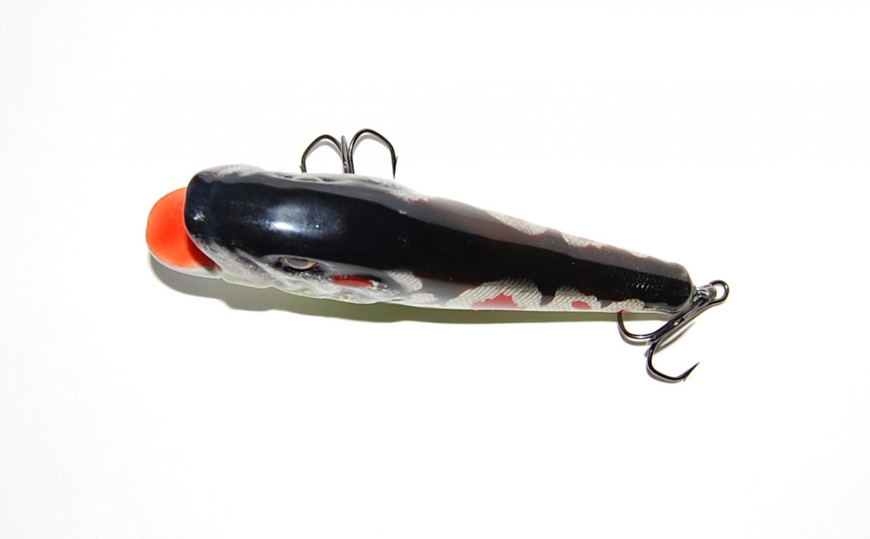 Описание приманки: Получился некий гибрид воблера, поппера и джерка. Приманка плавающая. При погружении создает характерный "хрюп". Проводка сопровождается водяными завихрениями. Игра среднечастотная(бальса все таки задает более подвижную игру приманки в сравнении с древесиной более плотных пород дерева).