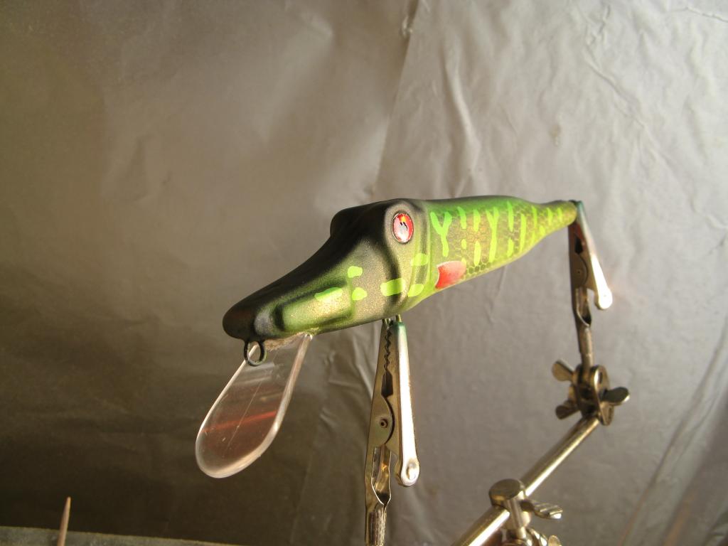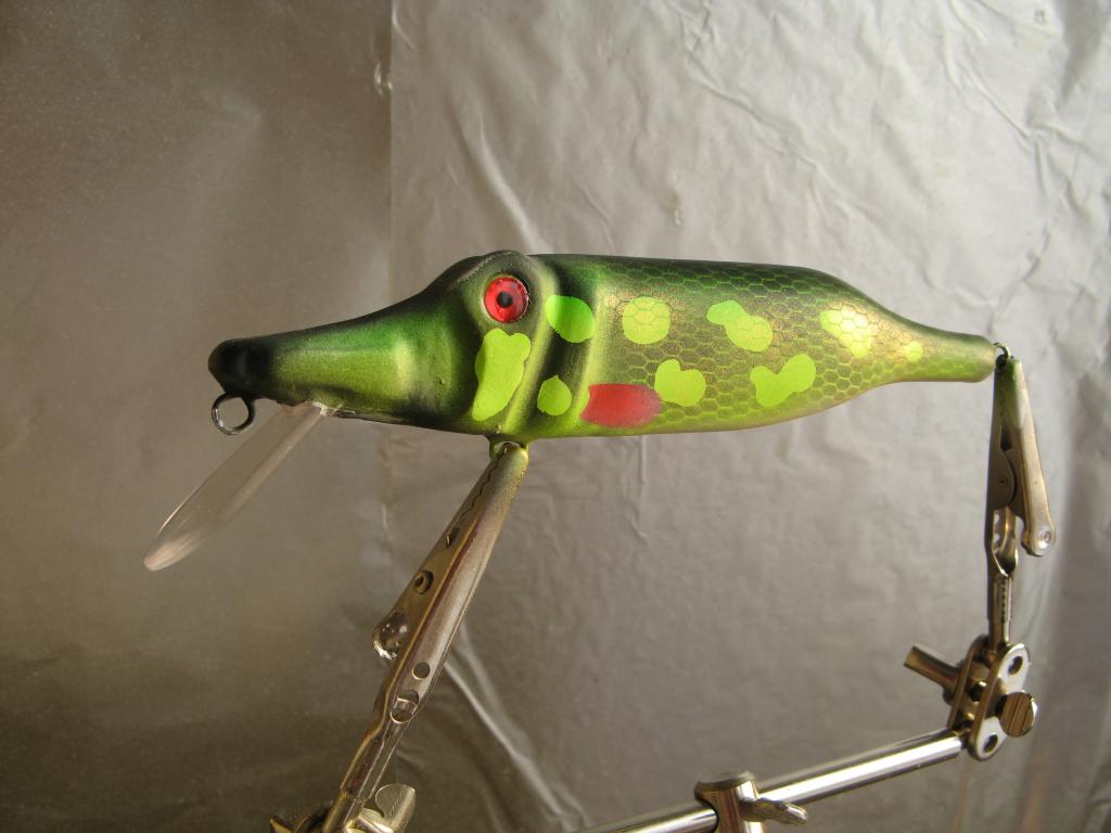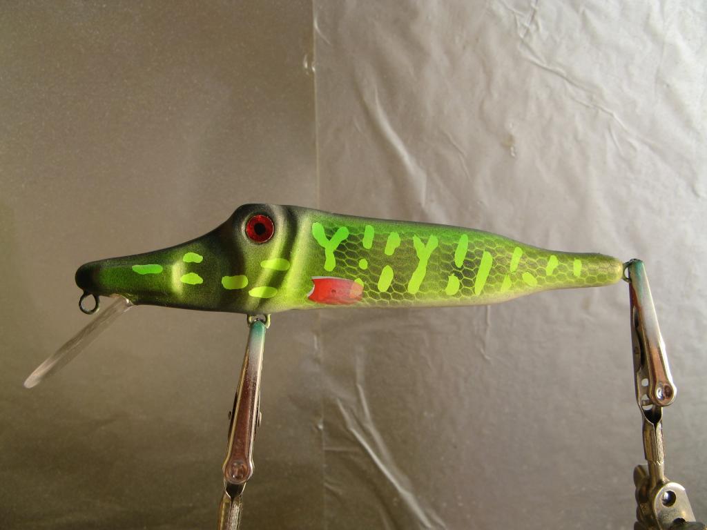 Вот в полном смысле-" наплевал "несколько раттлинов. Маленький оборотень- обна сторона -окунь, другая - под бель, 17 г , 10 см,, тонущий, ольха.И окушки-27 г , 13 см., плавающие. на грани суспрендера.Пропионат. Игра вальяжная, щучья. Но проблемы- перенес в раздел аэрографии, нужен совет.