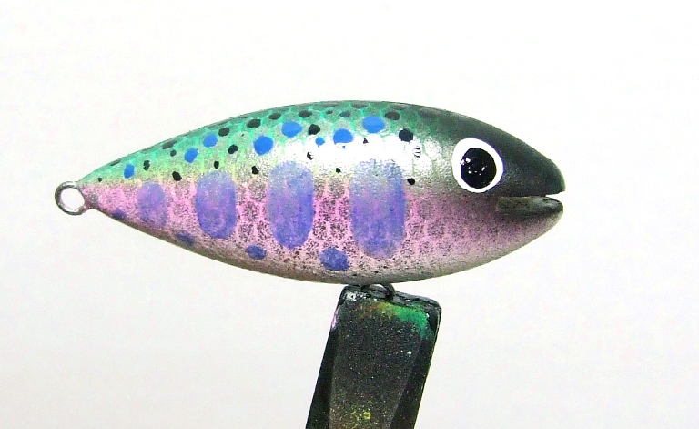 Всплыла ,где то увиденная картинка с воблерами разносторонней расцветки. Изготовил несколько, пока на раттлинах, но аэр подвел. Очень крупные капли, плевки , в общем прерывистая подача краски. Получилось грязновато.