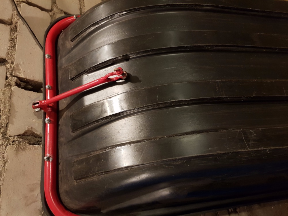 Борта на заклёпках с накладками укрепил , на днище трубу с 1см толщиной нарезал и половинками закрепил на крайних полозьях , ходят уже четыре сезона без проблем .