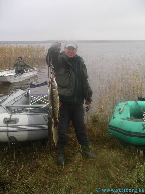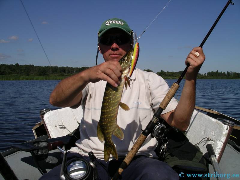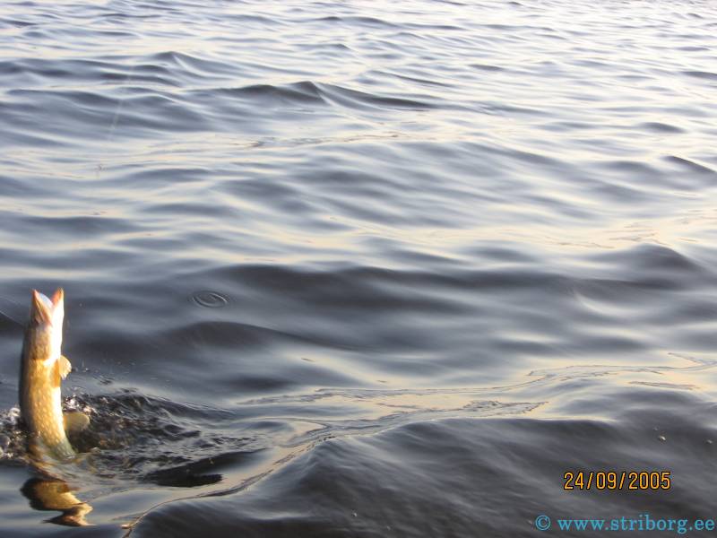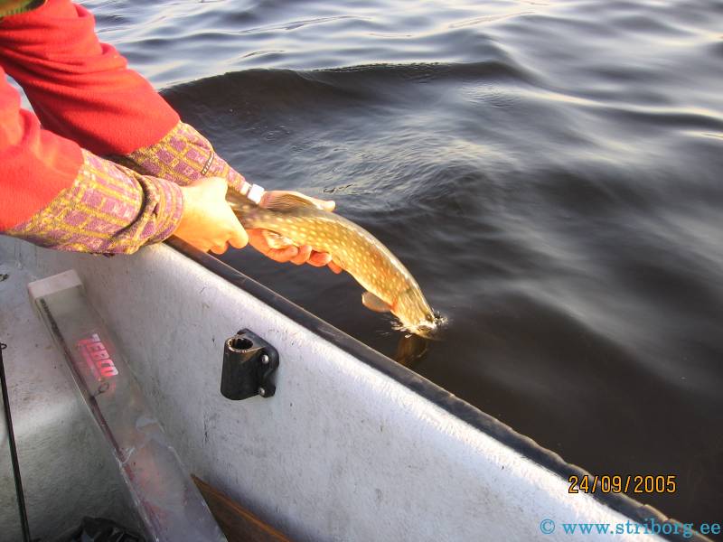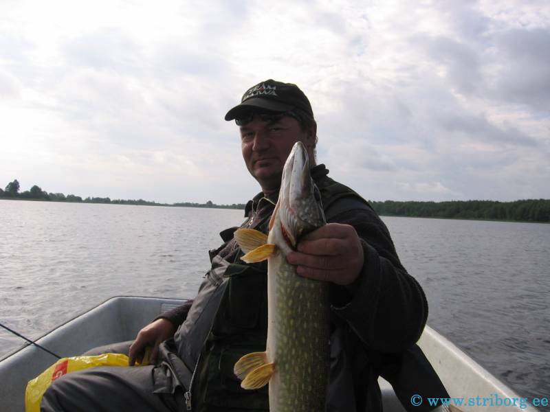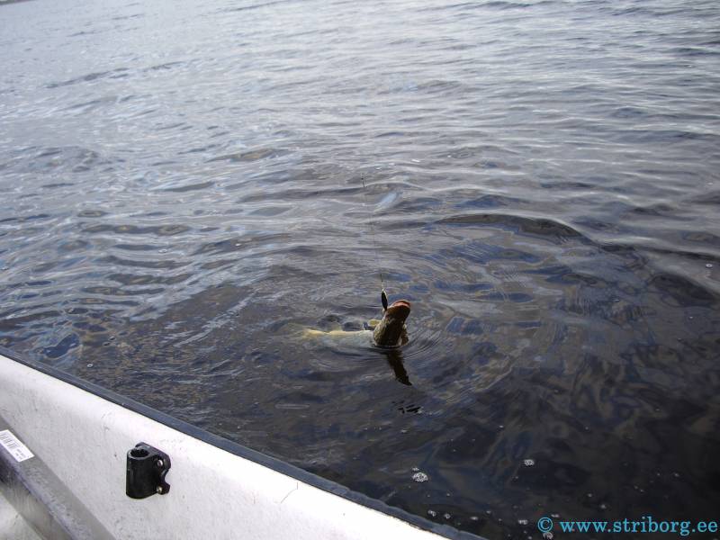 Стартавали в 00.30 (Борисс). В плане куда податься за большой рыбой были большие сомнения: с одной стороны Фил с удачной в прошлые выхи рыбалкой на Лахепере плюс хорошая компания, с другой стороны не хотелось так далеко забираться. Рыба ведь, как всегда рядом, только ловить нужно уметь. С таким девизом мы тронулись в путь, молча, в слух не говоря куда. По дороге выяснилось, что наши мнения совпали. Проработали также и зарпасной вариант на случай если вода окажется очень высокой и мутной и сведет наши попытки на нет. По приезду выяснилось что вода высокая, но не сильно мутная и решили спуститься на воду. Первые часы прошли в вялом клеве мелочи, кой ранее было там по более. Далее, одну ямку решили продолбать основательно, зная что рыба там есть и много. В какой-то момент я поставил сальмовского Фатсо 14 см длиной и около 100 грамов весом и на третей проводке случилась поклевка каго-то монстра, но почти сразу же досадный сход, поскольку средний тройник при забросе зацепился за поводок. Делаю еще несколько проводок этим же воблером и я меняю его также на 14 см монстра от бальзера, выступающего в более лекгой весовой категории. На второй же проводке поклевка, которая приносит 3-4 кг щучку (списибо Борьке за умелое подсачивание). Через несколько проводок еще одна поклевка на сей раз чуть более килошки. Борька на этой ямке уверенно задрал 2 кг. Далее еще поклевывала мелочевка но ничего серьезного не было, за исключением схода у Борьки, по ощущениям не меньше чем первая.