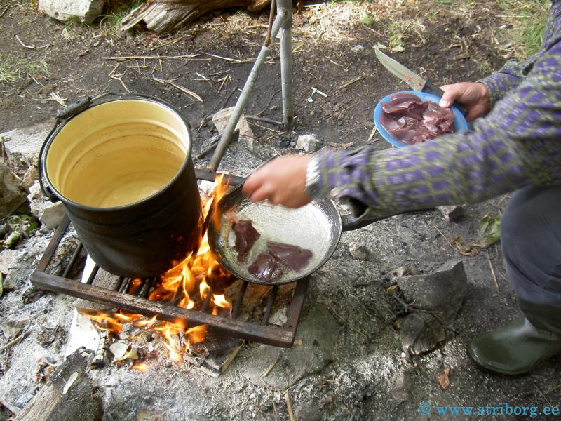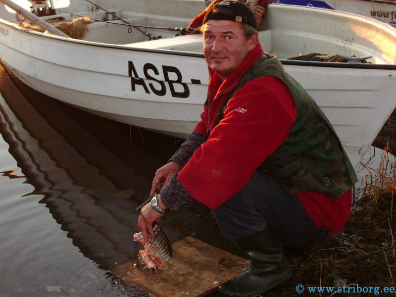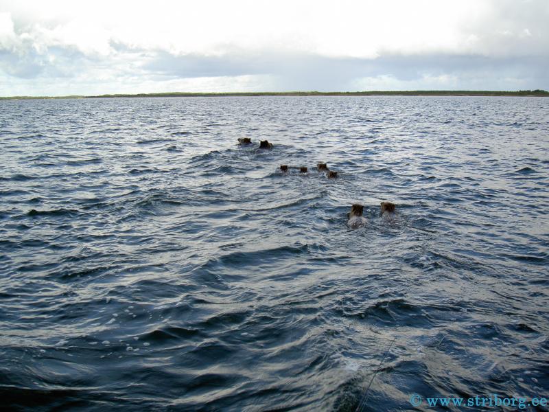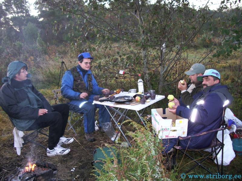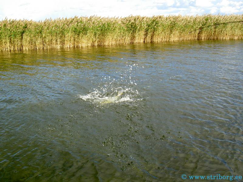 Места красивые, нехоженые, но разбить лагерь и насладиться просторами негде. Добрались до устья речки Tänassilma и решили окончательно тормознуться. Вечерело. Юрка сразу накачал лодку и пошел в озеро. Поимел один сход, почти в лодке. Как назло, разогнулся карабин. Я решил половить удочкой и понаслаждаться природой. Сын Сергея(Сира) Димка сразу показал мастер-класс по поимке подлещиков и всяких рыб, которых мы использовали в роли живцов. Быстренько прикормил яму у берега (где-то 3 м.) и до вечера наблюдал уважаемого Отсоса Петровича.