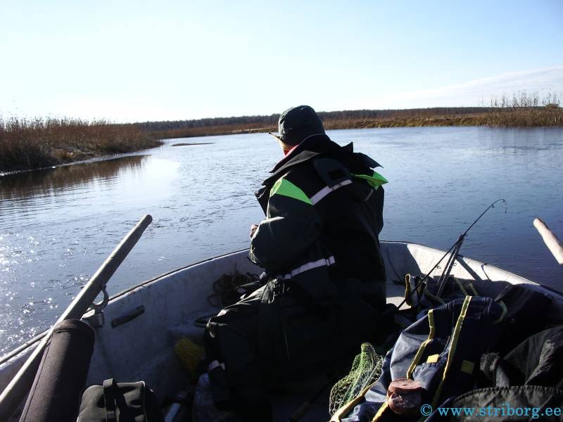 Быстро спать а через два часа Фил толкал уже в бок пошли грит пошмаляем разными приблудами в мимо проплывающих рыпов. Кофе яишня глазунья и вперед — вышли в озерко глубинка 1,5 -2 метра. Мы двинули вдоль кустиков Фил с Женей посередке — через час насмотревшись разбегающихся мальков от наших приблуд и поймав штук пять окунишек стограмиков. Рванули к Филу где говорим рыпа то — а он глядите и кажет куканчик с парой килошек. А на что? — а на такую же ! Ну и нас пошло одна другая но все мелочь — незачот. Подошли к Филу чайку попить — а там у меня бац остонов, я ее туда сюда иди ко мине — а она неа под лодку хочу, но Шурик с сачком не дали шанса рыпке за два кило весом. Так и осталась вона к сожалению самым большим переживанием за енту поездку. Были еще шнурки но уже не то. Погнали пообедали и решили в енто самое устье Эмушки сгонять в запретку значить — туда шли волна хоть и была но так полметра, а идти то 10 км так что пришлось попрыгать на волнах то -задницы мои пассажиры отбили конкретно летели быстро по дороге даже весло потеряли