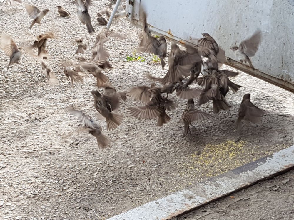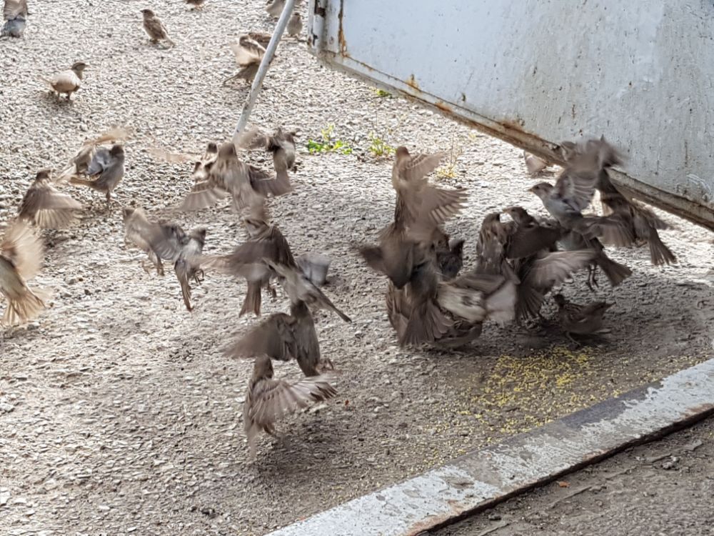 А прикормились воробьи и пока меня нет в гараже они клюют муравьёв в ожиданиии если ещё 2 года назад у меня под входом шла дорожка из муравьев нынче видел с весны от силы три-четыре штуки, пока воробьи меня ждут клюют этих паразитов. А ещё они машину узнают, если она в радиусе 30 метров от гаража стоит.