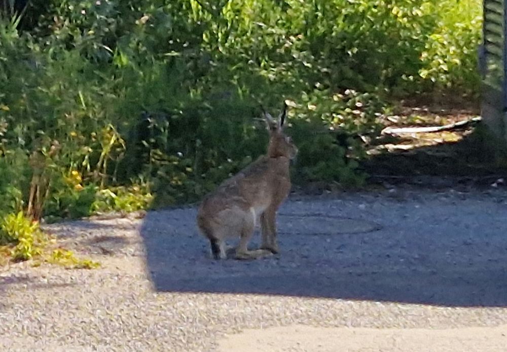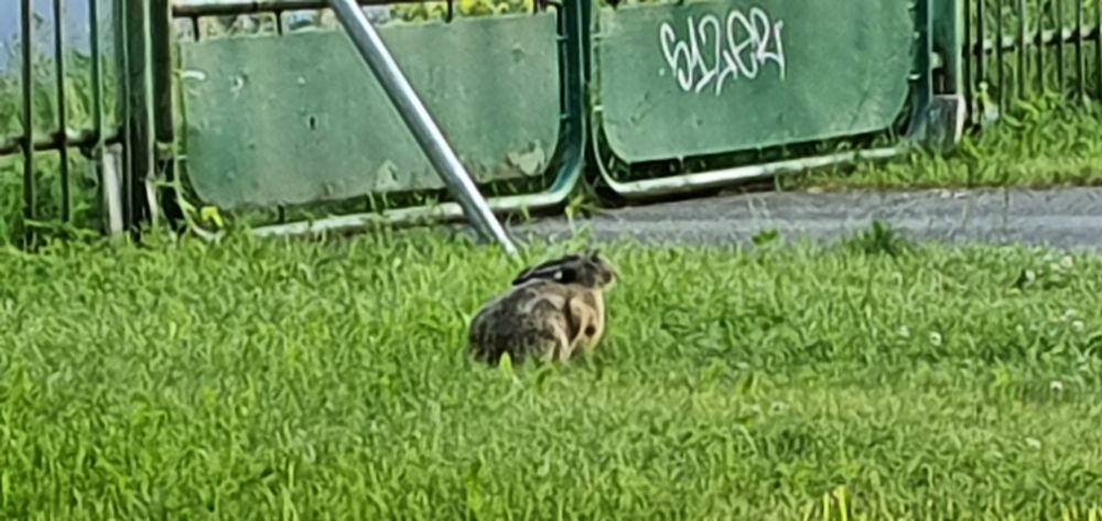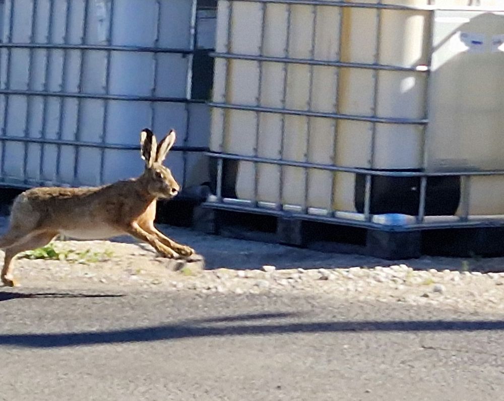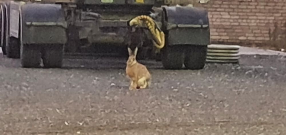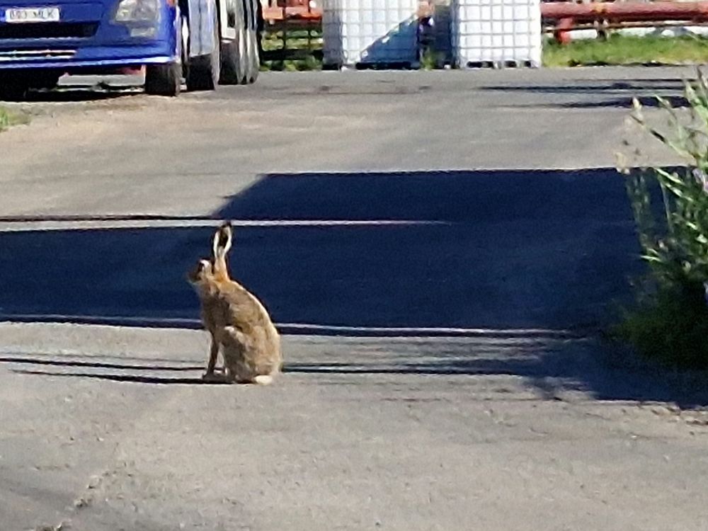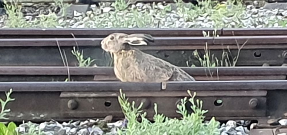 Еду уже по территории работы, весь в думках осенних, а тут косой кидается под колеса и главное выскочил на железную дорогу, сел в 4 метрах от меня и наверно про меня всякие гадости думает!