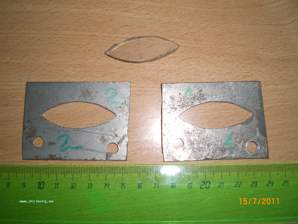 вертушки не сделал, а "сляпал", лишь бы проверить. теперь, имея шаблон, можно наделать несколько лепестков - рабочих, и потом уже собирать окультуренные варианты между пластинами вставляю медь (или...), в отверстие - прозрачную фигню, все это в тиски (массивные) и давлю. глубину выдавливания регулирую силой сжатия тисков (т. е. докручиваю ручку тисков до определенного угла - получаю лепестки одинаковой кривизны)