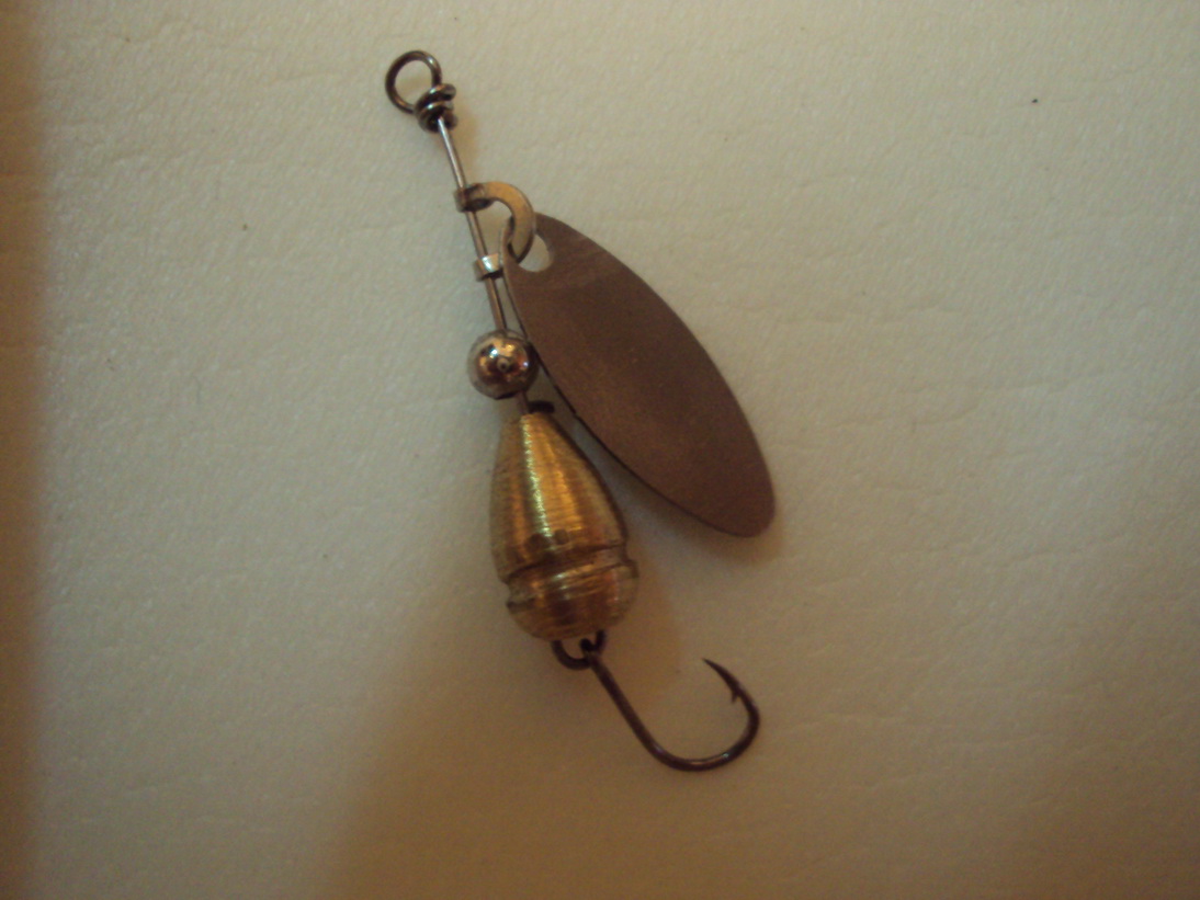 Лепестки медь ,латунь, нержавейка. толщина 0,4-0,5 мм. Те что побольше заводятся на ура на всех скоростях ловится окунек щучка красноперка, те что поменьше как раз тестирую, они в основном на мирную рыбку поэтому и одинарники. Все детали делаю сам за исключением хомутиков и крючков, но хомутики тоже делаю но проще купить, а так пока шлифую технологию...
