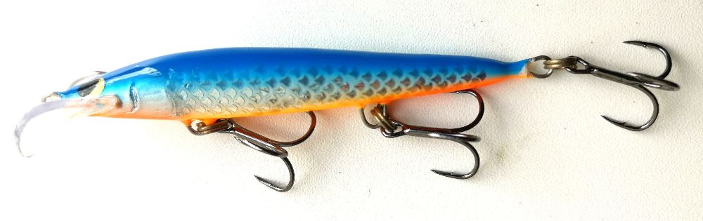 Давно не делал воблеры. Решил немного изготовить. Воблер "Монарх" длинна 100 мм. Материал бальза, пропитка и грунтовка пропионат, краски и лак САВ. Хромирование. Крючки "Owner" Каркас цельный, нержавеющая проволока 0,8 мм. Лопасть пропионат. Глубина заглубления 1,5-2,5 метра. С "двойной" игрой. Хорошо ловит на дорожку: "красненькую," судака, окуня, щуку.