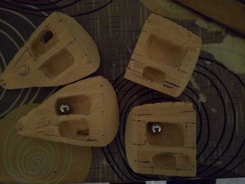 эпоксидака с опилками, закладываю погеремушки, склеиваю секции, сразу вклеиваю петлю для переднего тройника. Обрабатываю по контуру, эпоксидкой вклеиваю плавники.Пропитываю эпоксидкой с растворителем (1часть эпоксидки 2-3 части расворителя), здесь погуще для одного слоя - две части расворителя. Высыхает в теплом месте (на 48часов в печку). Третью и четвертую секции соединил сразу, для огрузки одним блоком. Огрузил каждый сегмент отдельно до слаботонущего состояния. Во воторой секции промахнулся с объемом огрузочной камеры, почти 17 грам свинца не влезло. Пришлось с торца фрезой выбрать паз, вынуть шарики огрузки, залить свинец в торец. Шарики на место, отверстие заделал. Пазы для заливки свинца выводил в разных местах. Где на живот, там где плавники в торцы. Огрузка первой секции 42 гр, второй 49 гр, 3+4 28 гр.