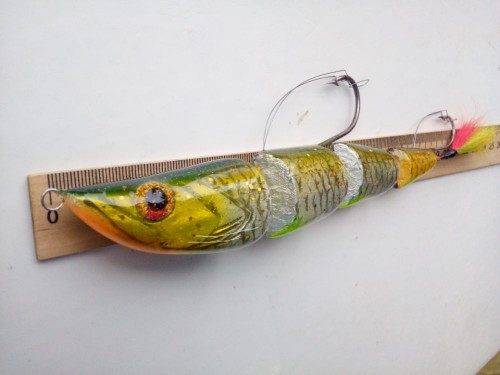 Идея та же, прототим американский. верхний 14см, средние 12см, воблера суспендер для твича, рабочий горизонт около 1.5-2м.