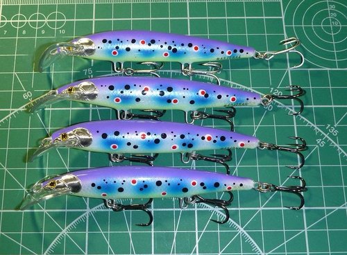 Готовлюсь к сезону! Эти расцветки были бесподобны, великолепны и изюмительны в прошлом году. И... в некоторых местах было замечено, что лососик и судак предпочитали более других - не большие воблерочки.... Можно считать эту страничку мой личный ТОП 2018. Типа