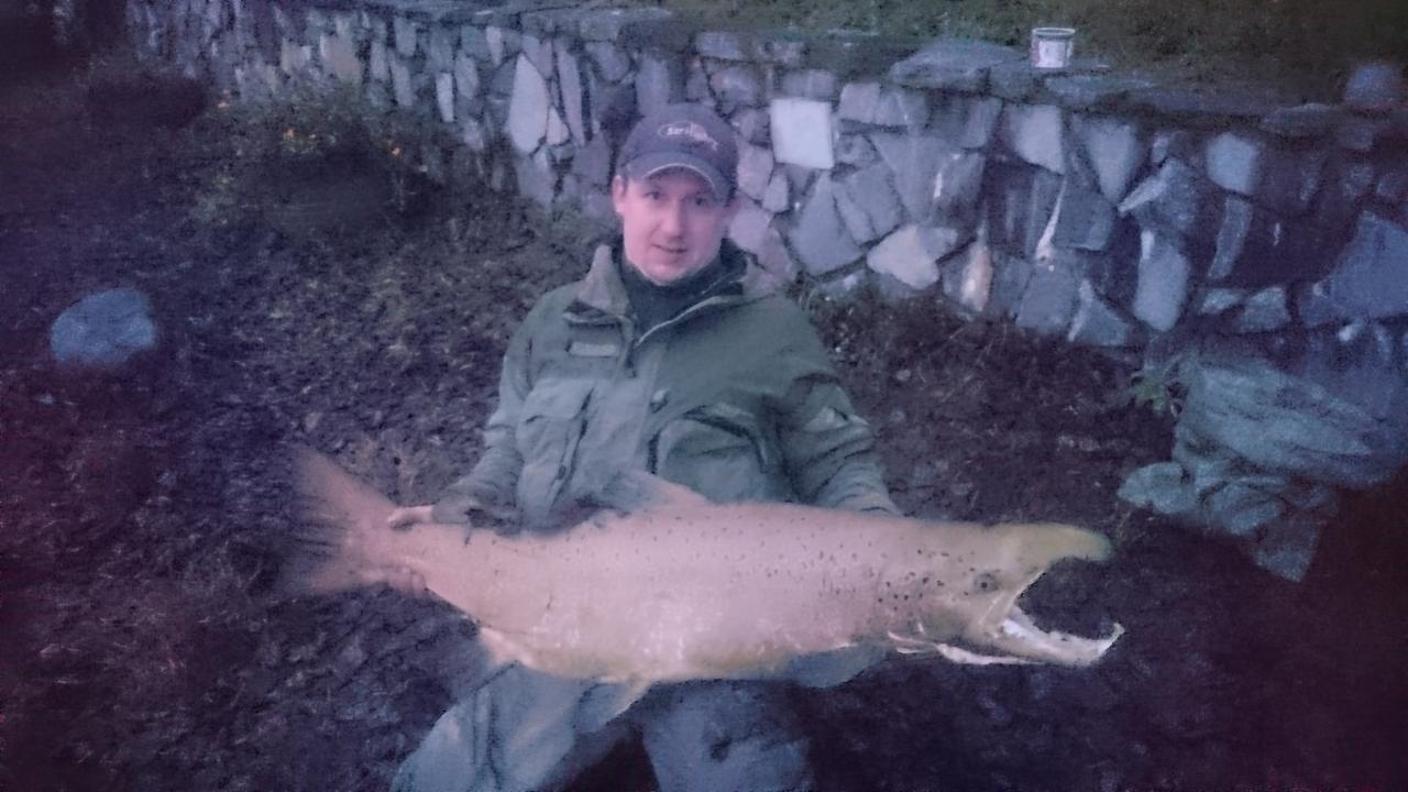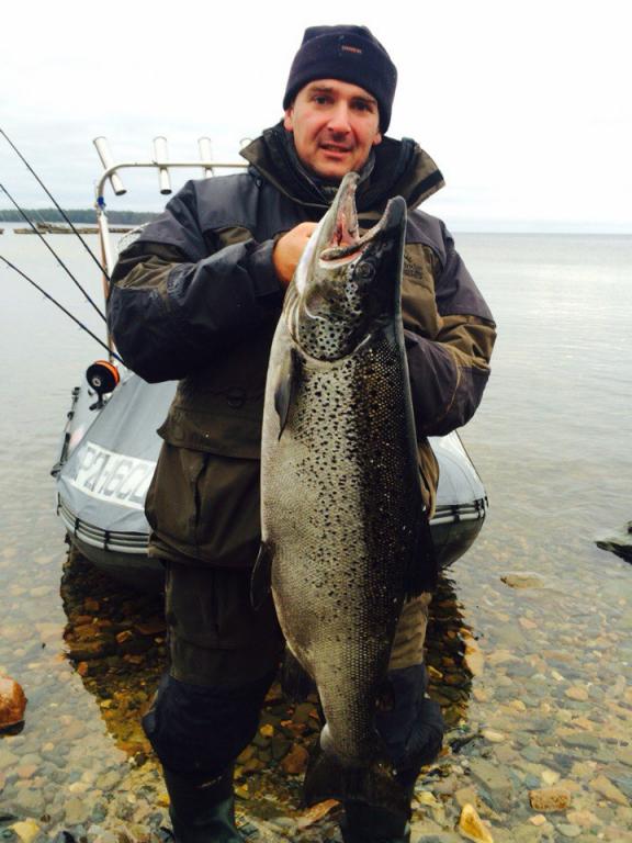 Осень 2015 г.Онежский лосось 12кг.100гр. Пойман на воблер. вываживал 40 мин.
