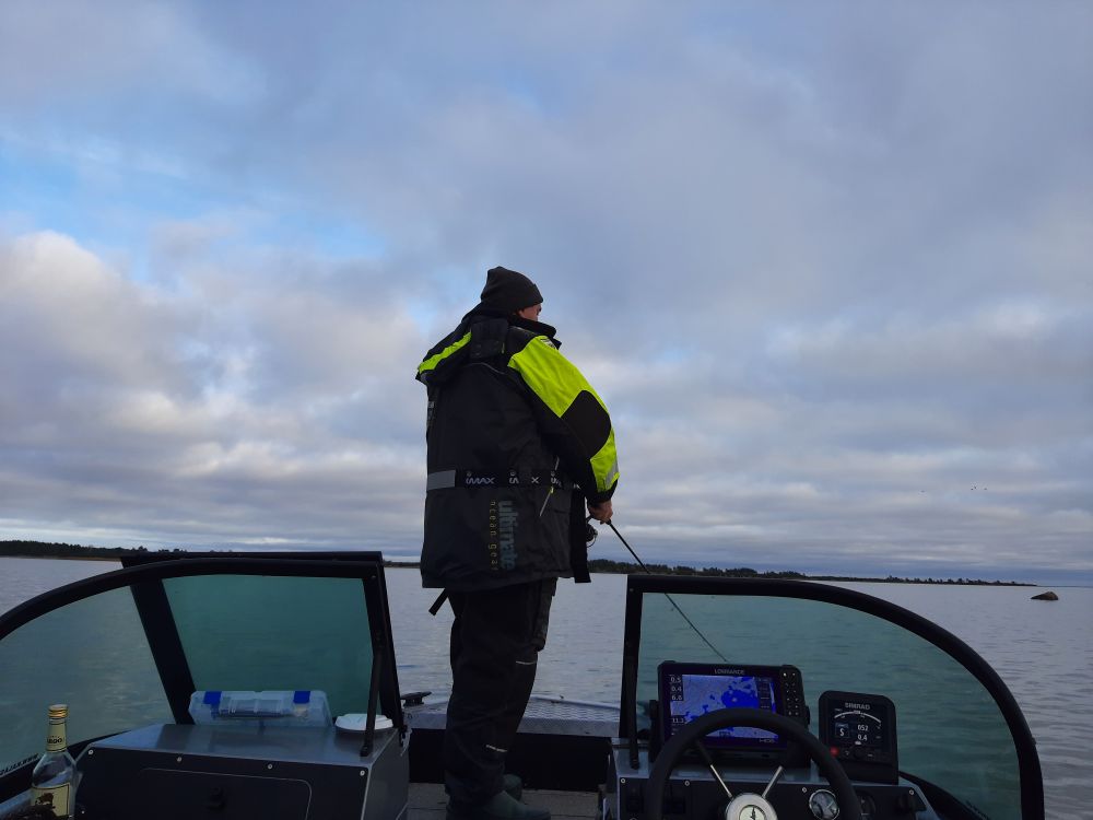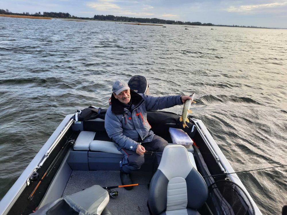 На воде тишина крастота. Вышли на глубину и по газам в даль дальнюю. На точке хот рябь есть какая то, а то штиль да штиль. Щучка молчала. Зато проявился окунь. и довольно бойко клевал. Да и размерчик приятный. Но как то быстро стайка ушла, а куда не известно. Чайки то нету, не отследить
