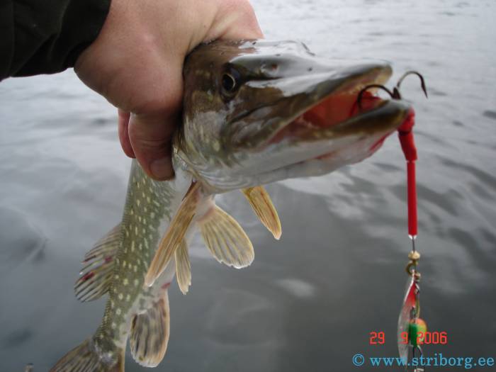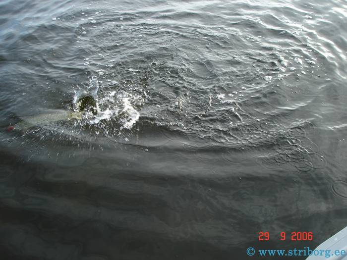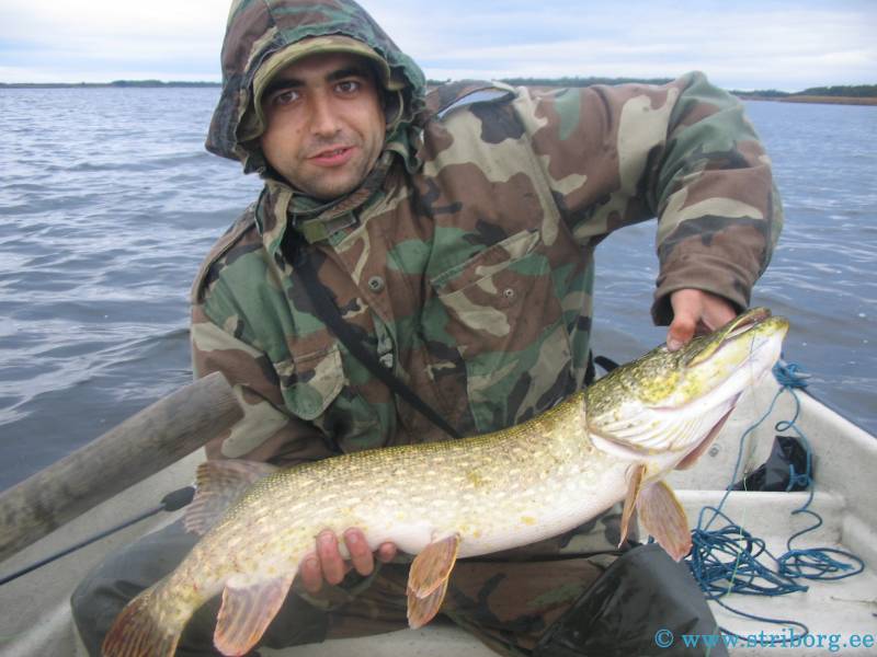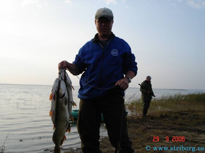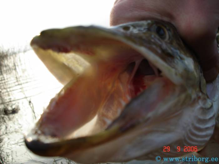 С утра клев был довольно активный, мы с Тармо поймали по нескольку неплохих "жабок". Получили массу удовольствия - серии "свечек", бросков под лодку этих зубастых красавиц: