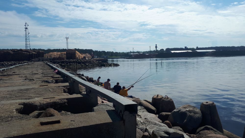 До сих пор в основном его ловили в Лиепае и Вентспилсе. А тут в шаговой доступности и говоря уловы неплохие.Сказано -сделано. В субботу не торопясь двинули на новую для себя рыбку. На молу места не заняты,располагайся где хочешь